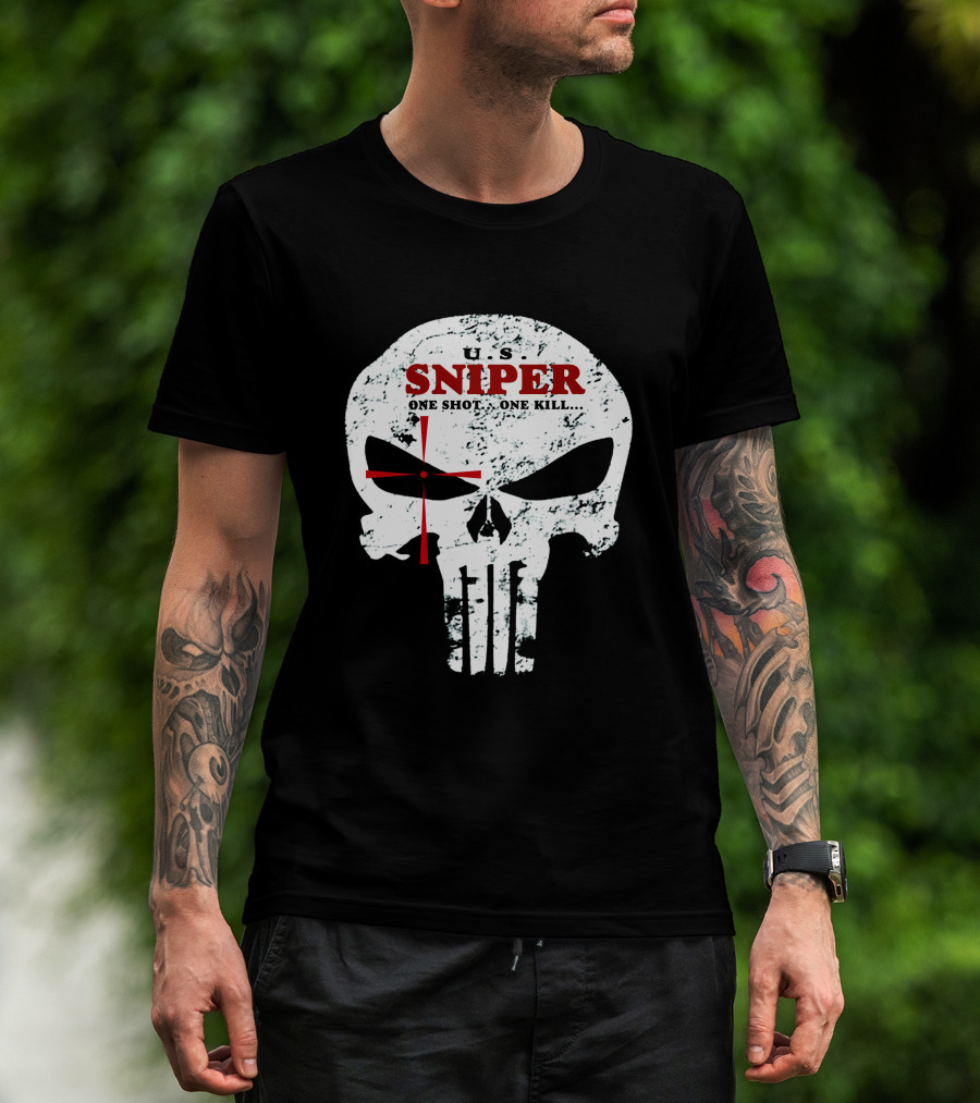 U.S. Sniper One Shot One Kill Skull T-Shirt