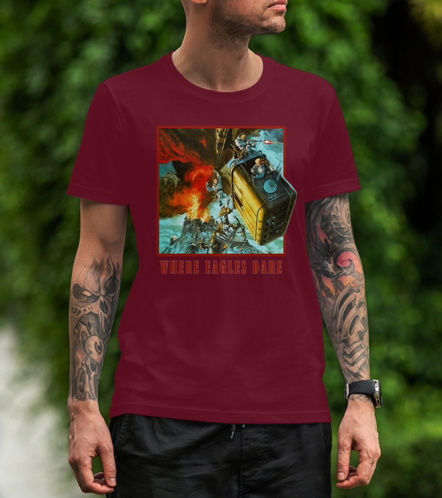 The Where Eagles Dare Cable Car Adventure Explosive Action Scene 001 T-shirt is designed for everyday wear and a consistent fit. Fabric is pre-shrunk ring-spun cotton with durable stitching. See the size chart below for exact measurements.