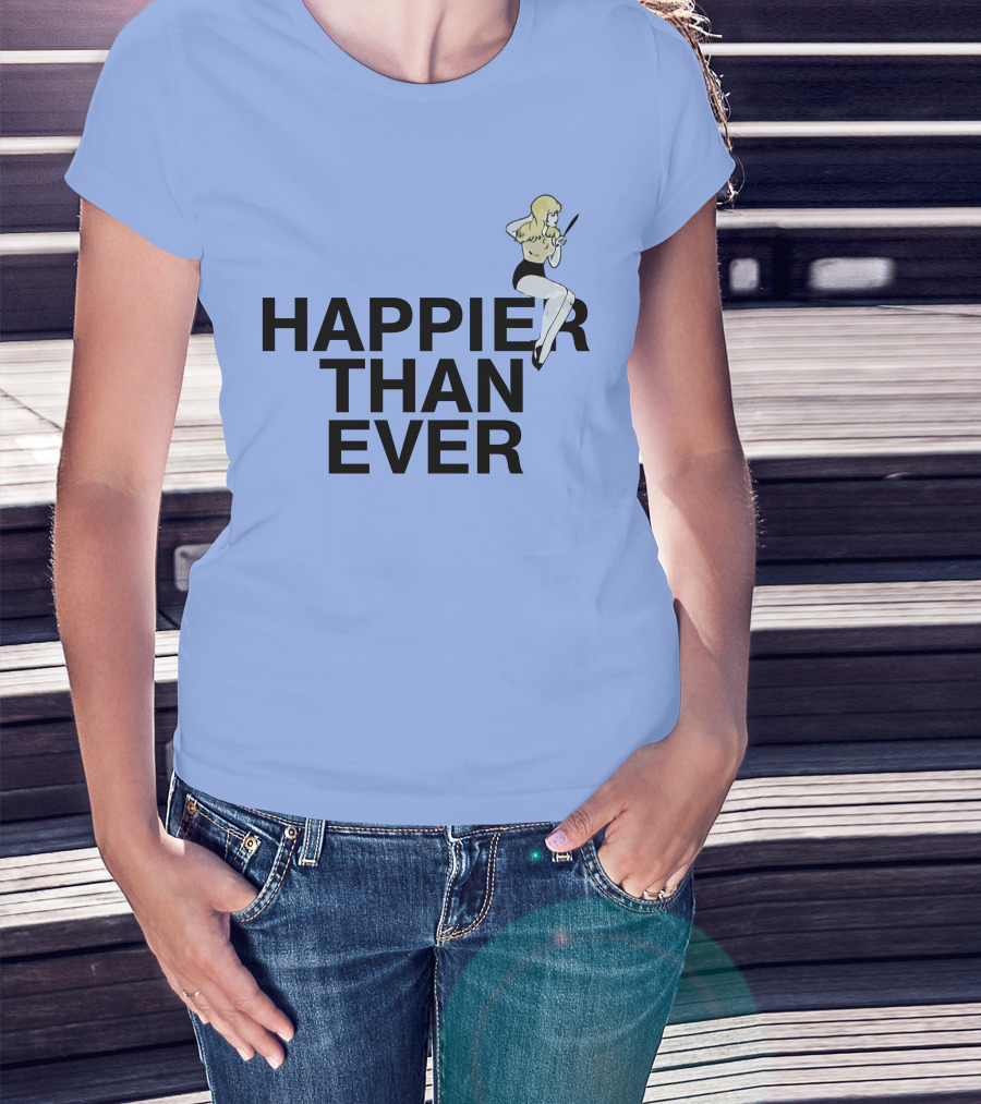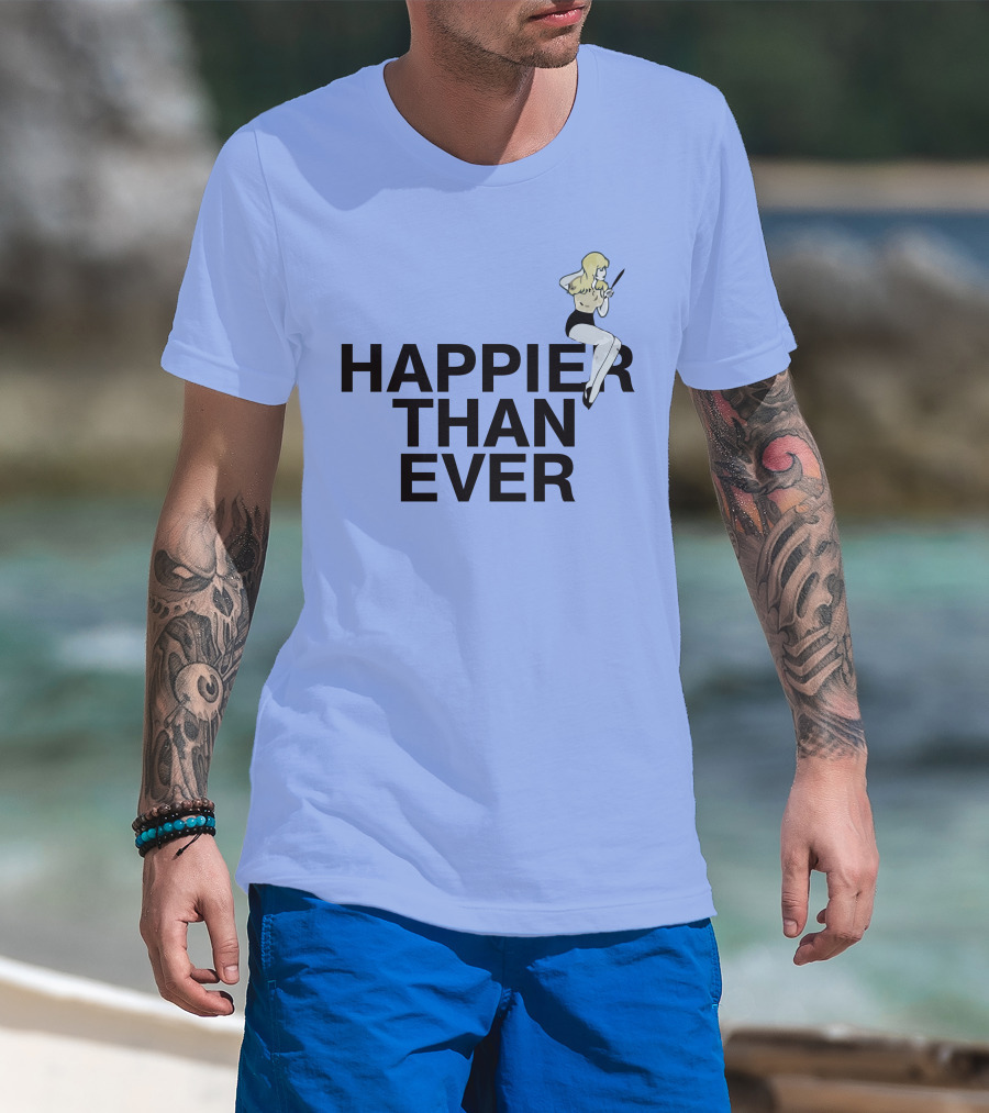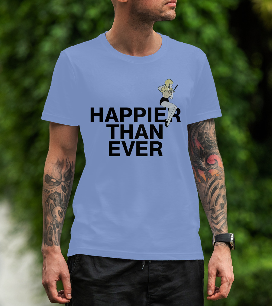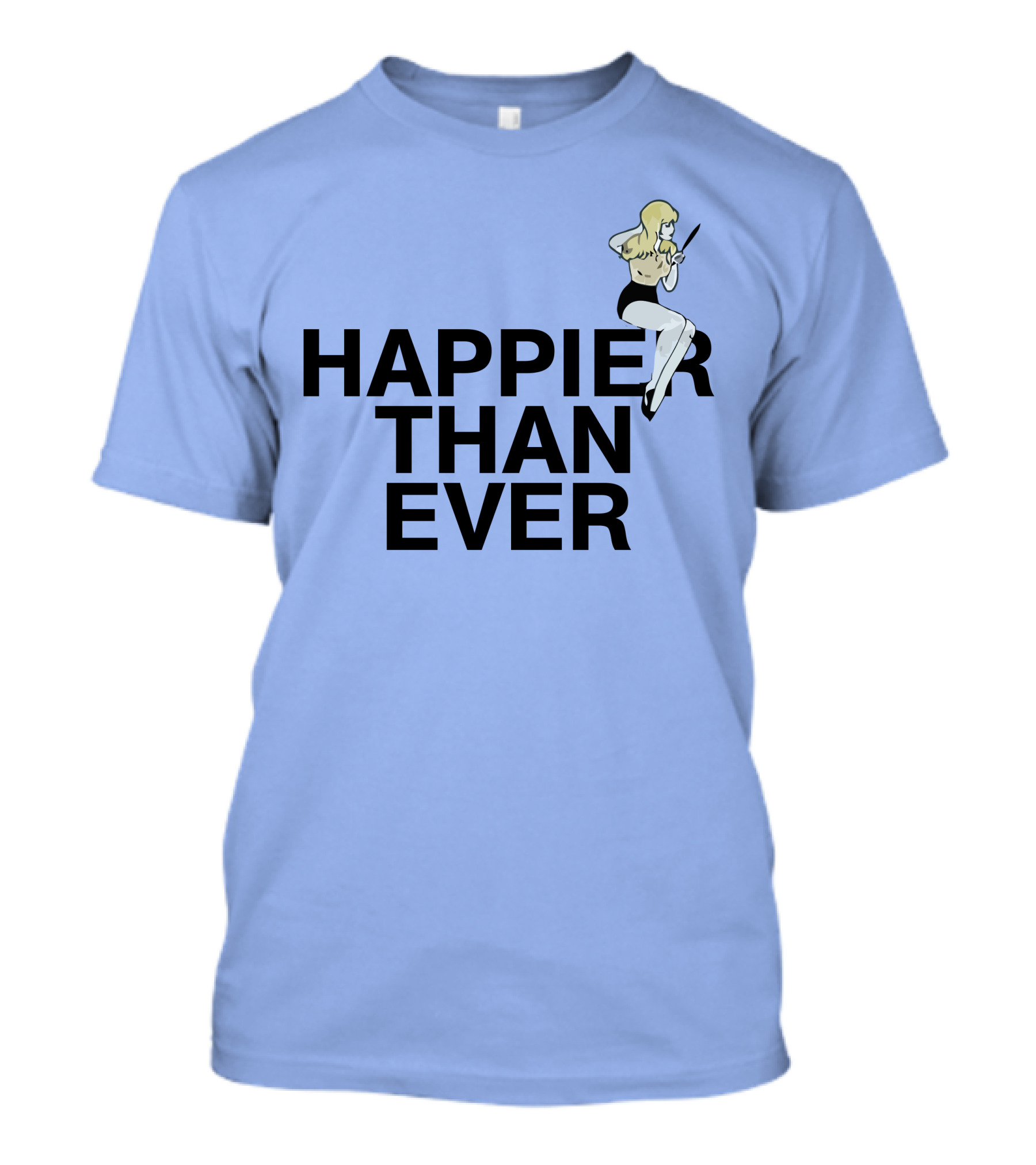 The Happier Than Ever Pin-Up T-shirt is designed for everyday wear and a consistent fit. Fabric is pre-shrunk ring-spun cotton with durable stitching. See the size chart below for exact measurements.