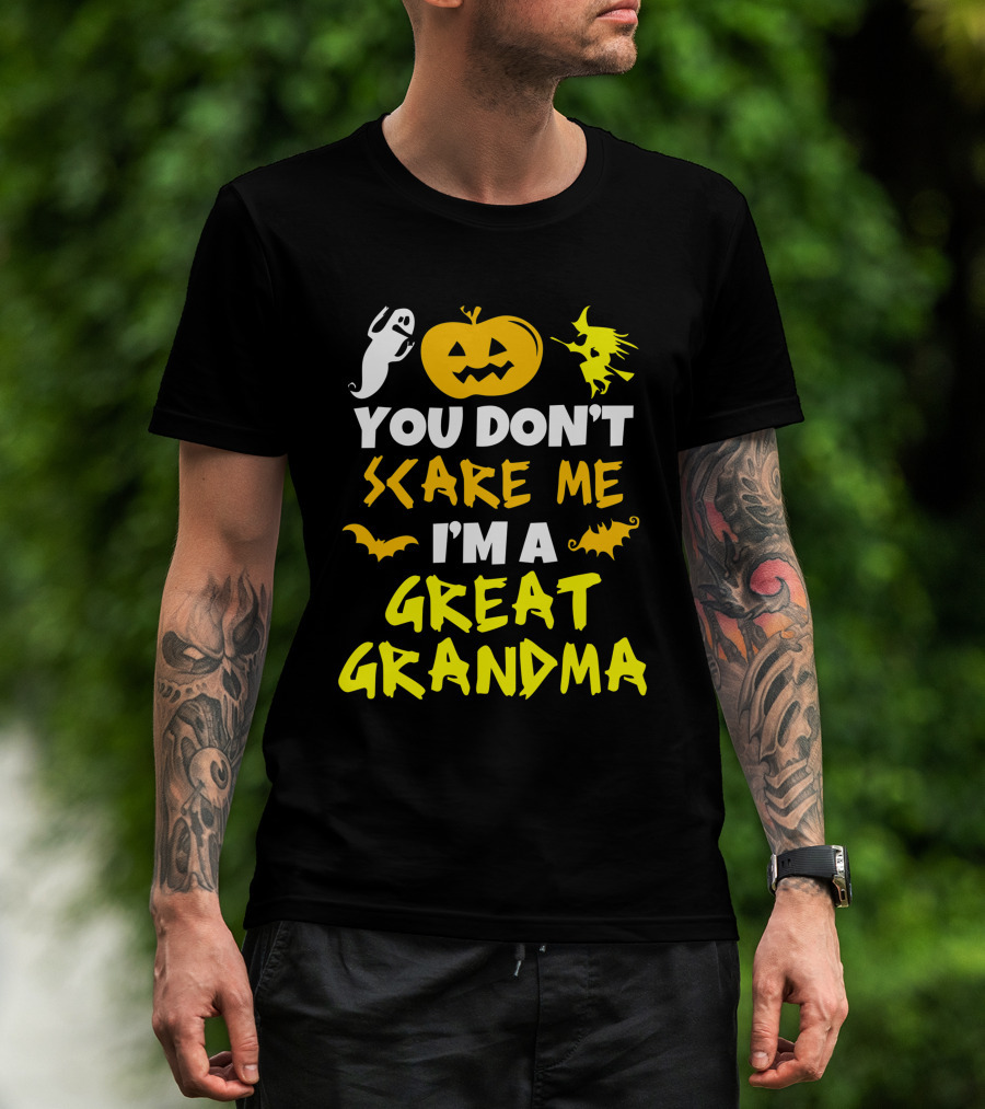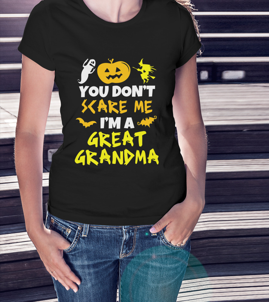 You Don't Scare Me I'm A Great Grandma Halloween Ghost Pumpkin Witch Bat T-Shirt