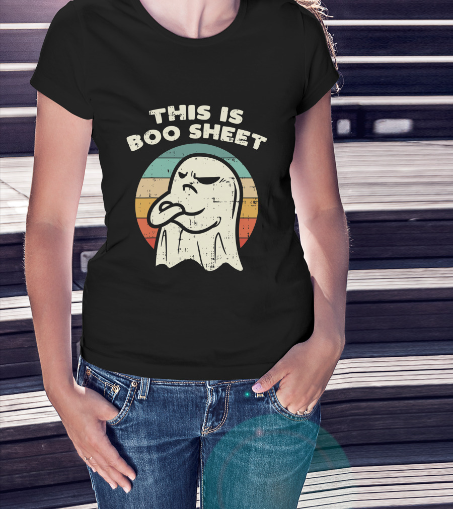This Is Boo Sheet Vintage Ghost Halloween Retro Stripes T-Shirt