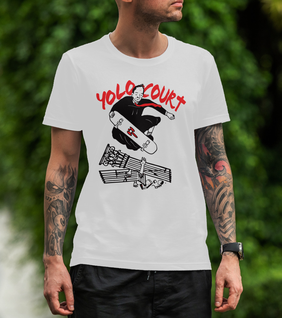 YOLO Court Skateboarding Judge Over Columns T-Shirt