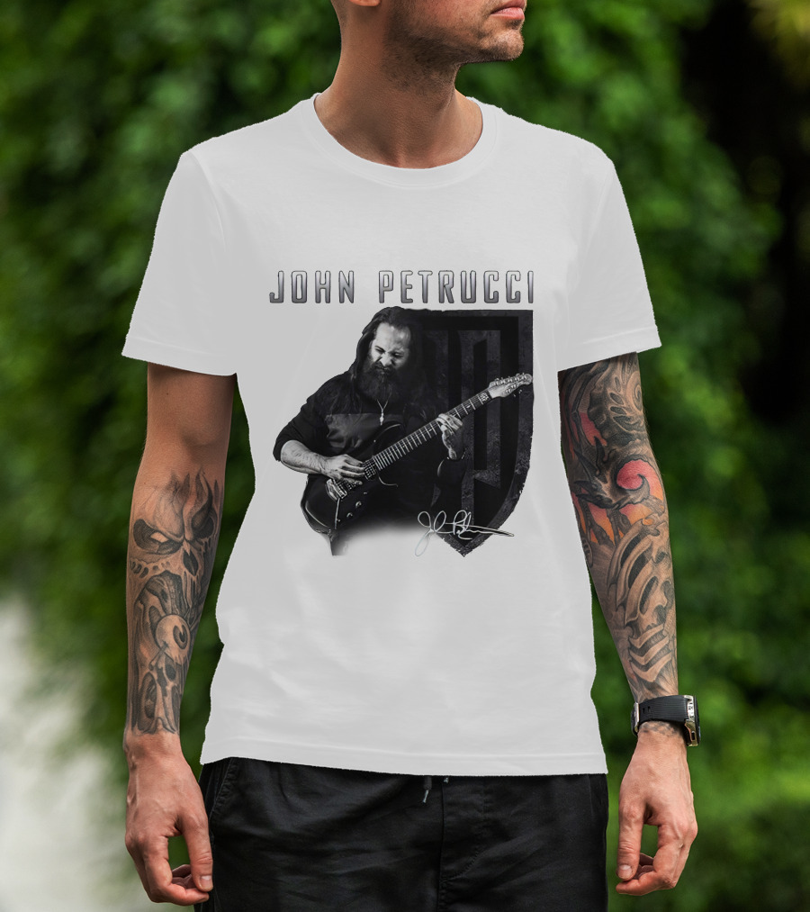 John Petrucci Guitarist Black And White Portrait With Signature T-Shirt
