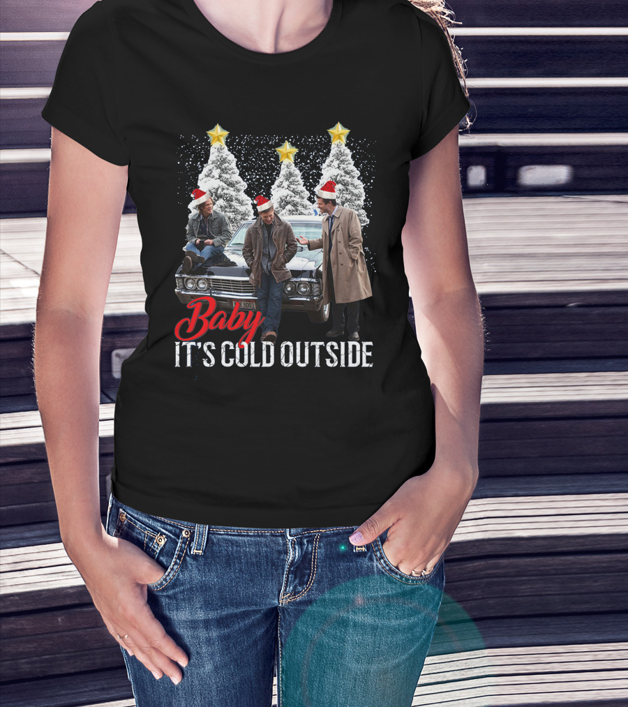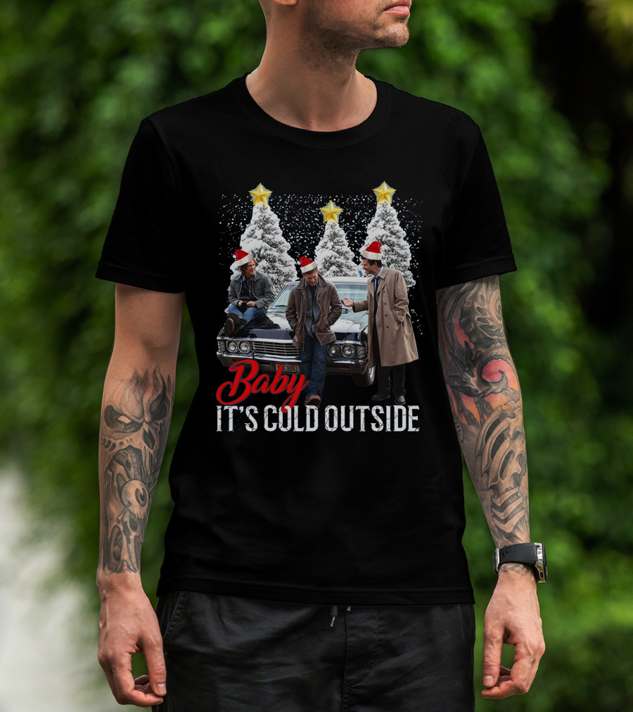 Baby It's Cold Outside Supernatural Christmas Tree Impala Scene T-Shirt