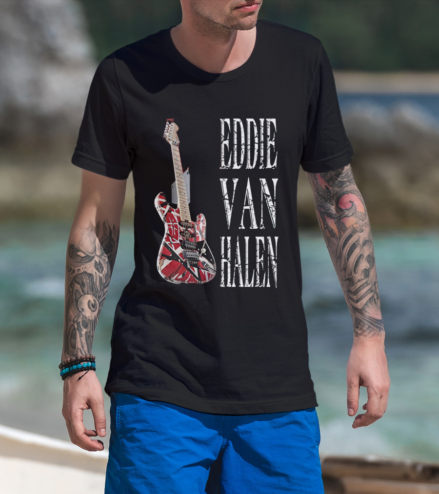 The Eddie Van Halen Guitar T-shirt is designed for everyday wear and a consistent fit. Fabric is pre-shrunk ring-spun cotton with durable stitching. See the size chart below for exact measurements.