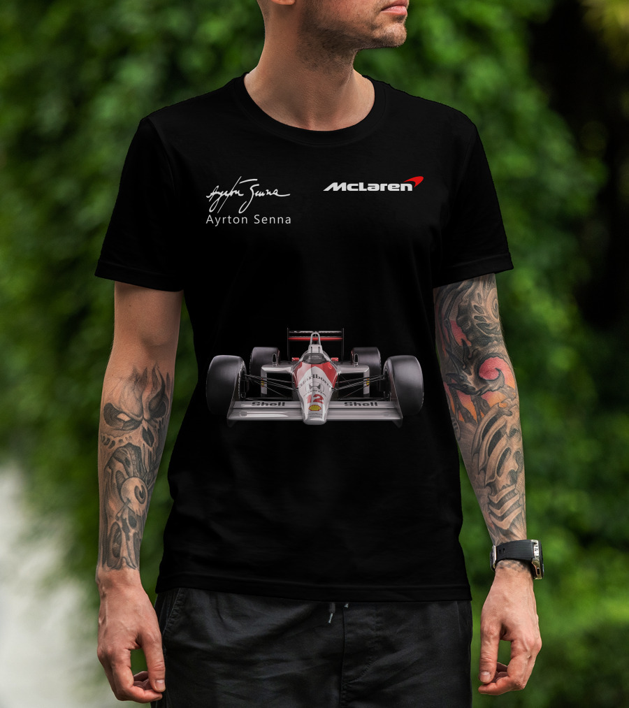 Ayrton Senna McLaren MP4/4 F1 Shell Racing Car T-Shirt