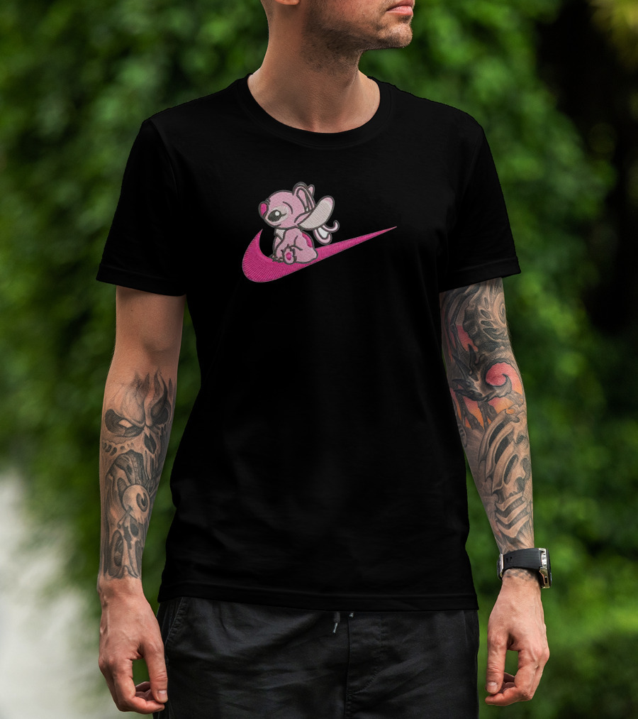Stitch 2 Pink Sitting On Swoosh T-Shirt