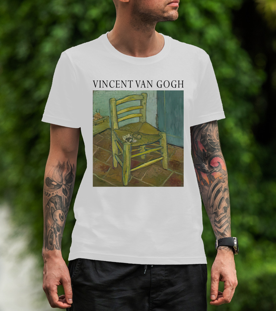 The Vincent Van Gogh Wooden Chair with Pipe and Letters T-shirt is designed for everyday wear and a consistent fit. Fabric is pre-shrunk ring-spun cotton with durable stitching. See the size chart below for exact measurements.