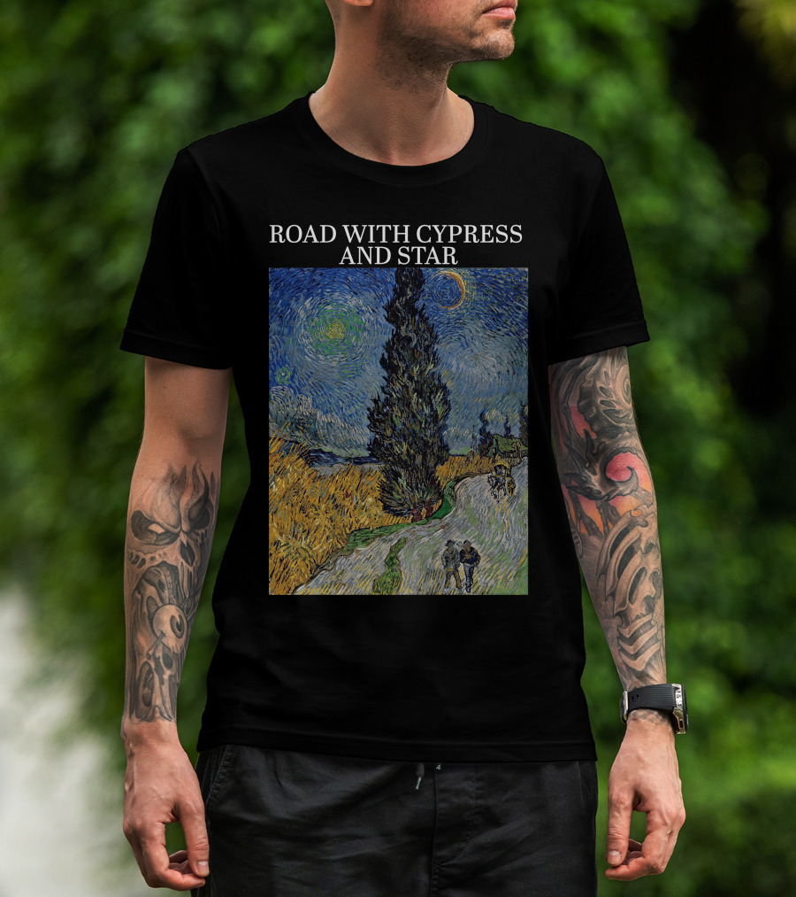 The Vincent Van Gogh Road with Cypress and Star T-shirt is designed for everyday wear and a consistent fit. Fabric is pre-shrunk ring-spun cotton with durable stitching. See the size chart below for exact measurements.
