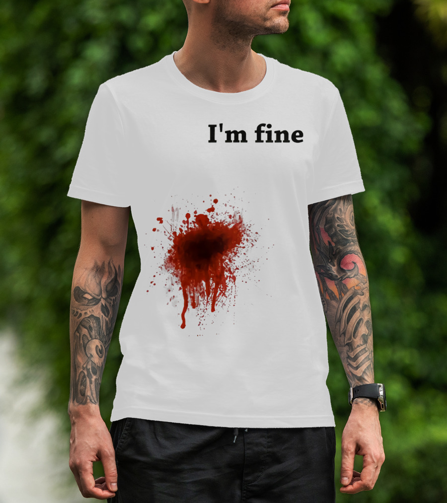 The I'm Fine Bloody Zombie Bite Scary Halloween T-shirt is designed for everyday wear and a consistent fit. Fabric is pre-shrunk ring-spun cotton with durable stitching. See the size chart below for exact measurements.