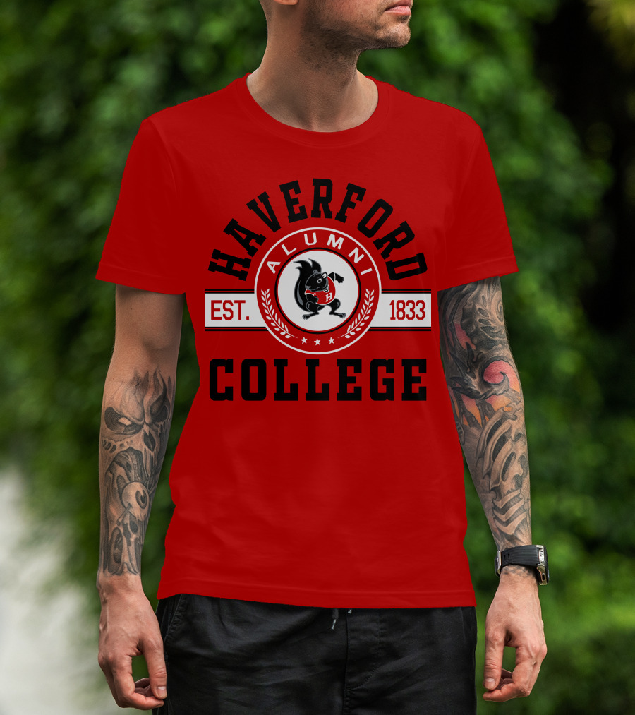 The Haverford College Alumni Est. 1833 T-shirt is designed for everyday wear and a consistent fit. Fabric is pre-shrunk ring-spun cotton with durable stitching. See the size chart below for exact measurements.