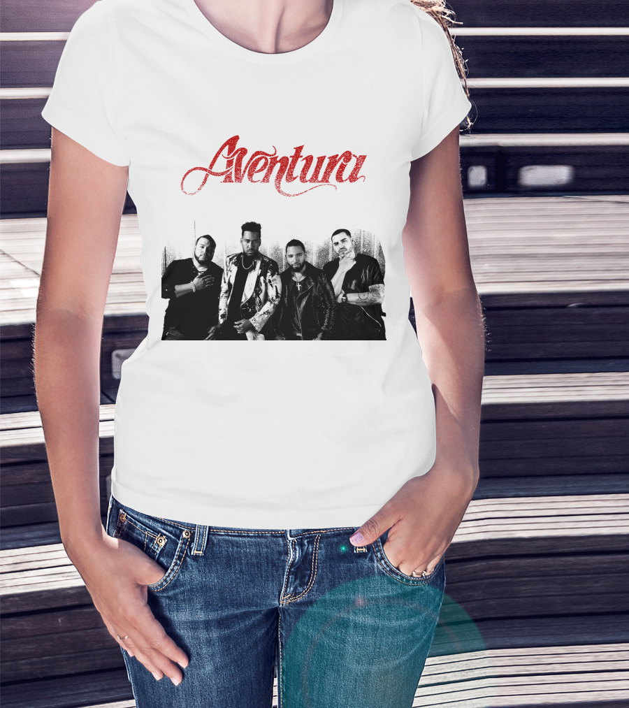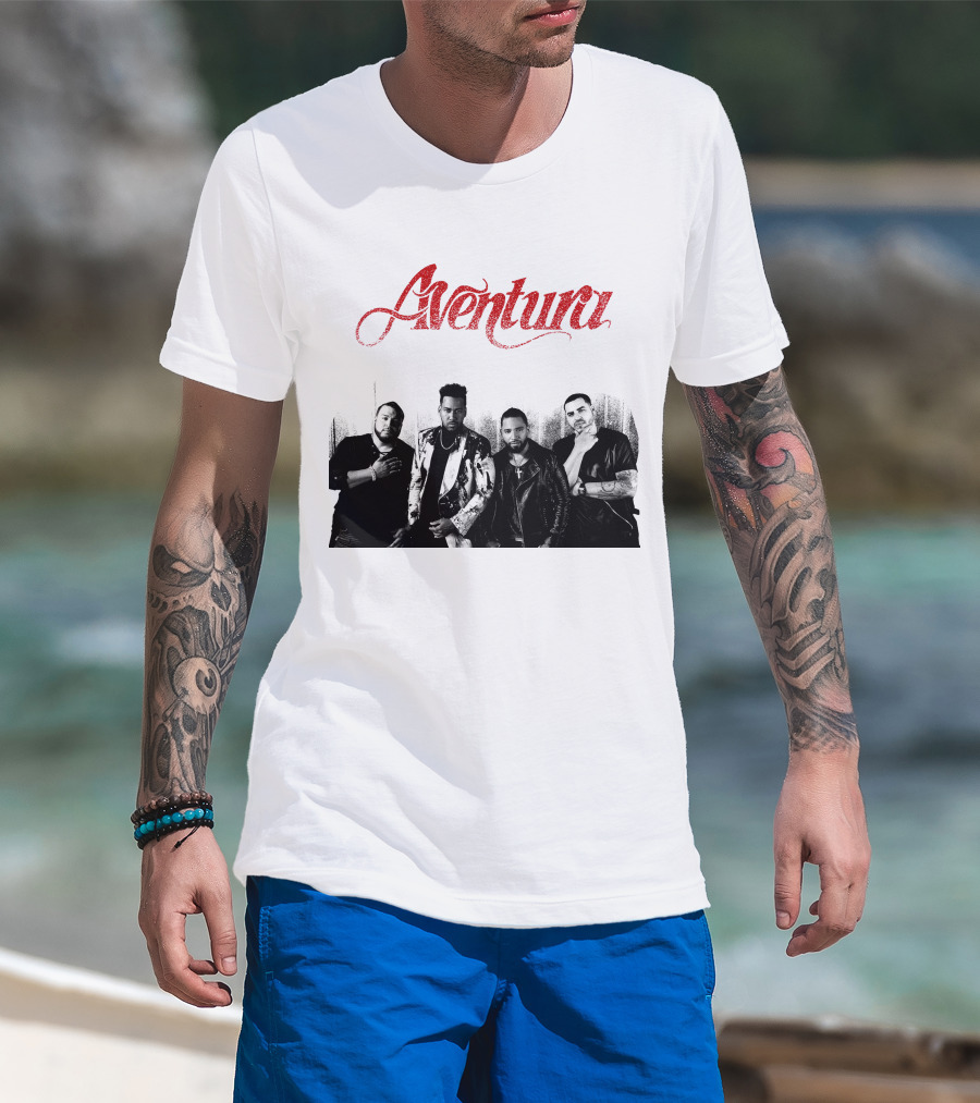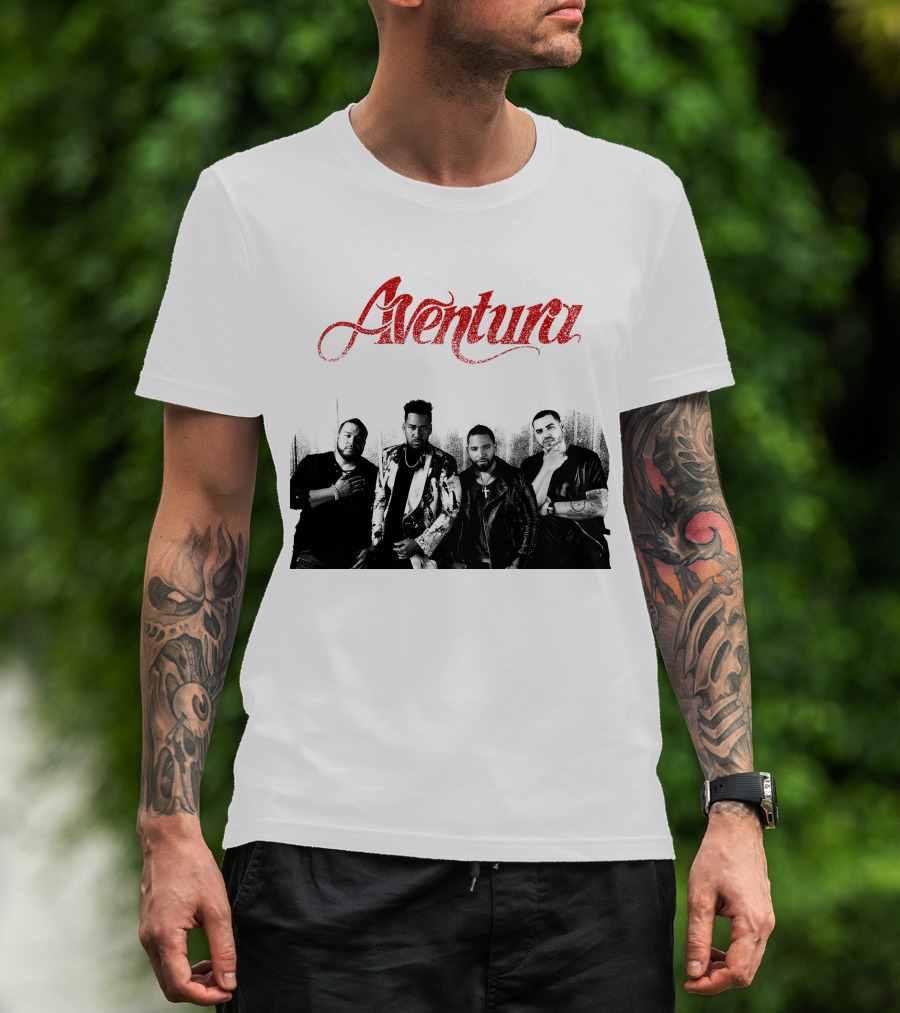 Aventura Band Vintage Black And White Red Script T-Shirt