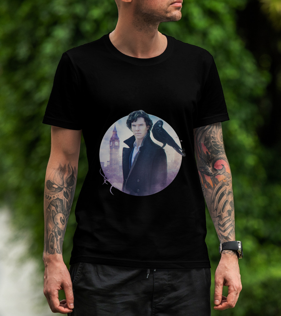 S.H Art Detective Silhouette With Crow And Clock Tower T-Shirt