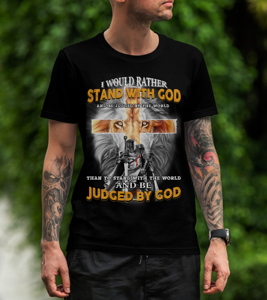 I Would Rather Stand With God Lion Knight Cross Judged By World T-Shirt