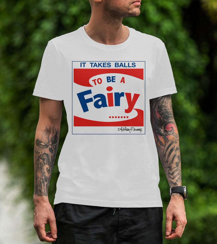 IT TAKES BALLS TO BE A FAIRY Adrian Shaughnessy Groovy Red And Blue T-Shirt