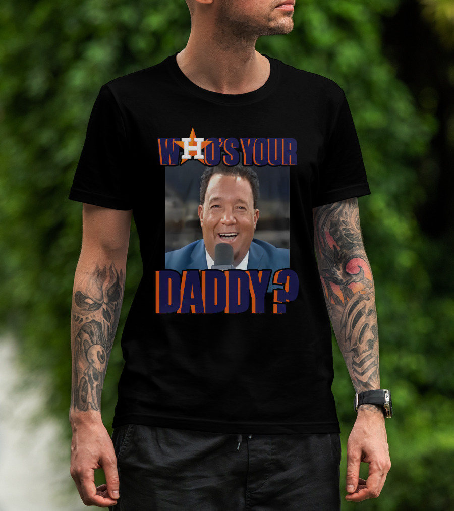 The Houston Astros Who's Your Daddy? T-shirt is designed for everyday wear and a consistent fit. Fabric is pre-shrunk ring-spun cotton with durable stitching. See the size chart below for exact measurements.