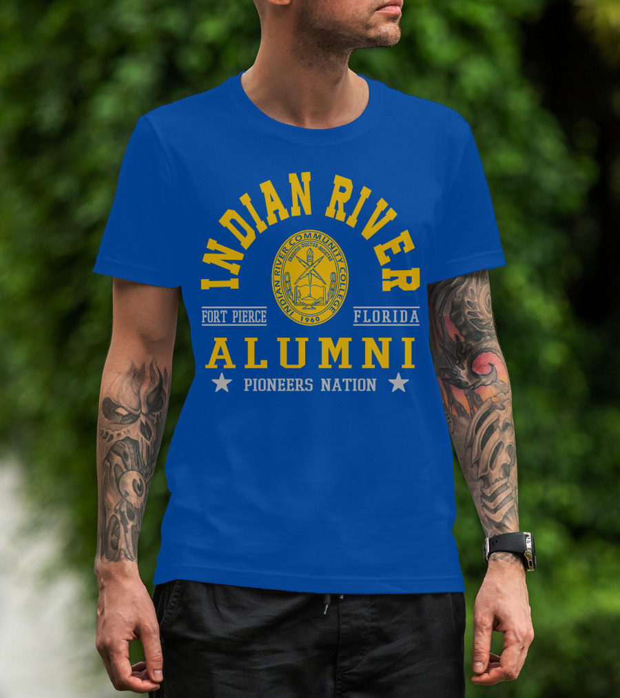The Indian River Community College Fort Pierce Florida Alumni Pioneers Nation 1960 T-shirt is designed for everyday wear and a consistent fit. Fabric is pre-shrunk ring-spun cotton with durable stitching. See the size chart below for exact measurements.