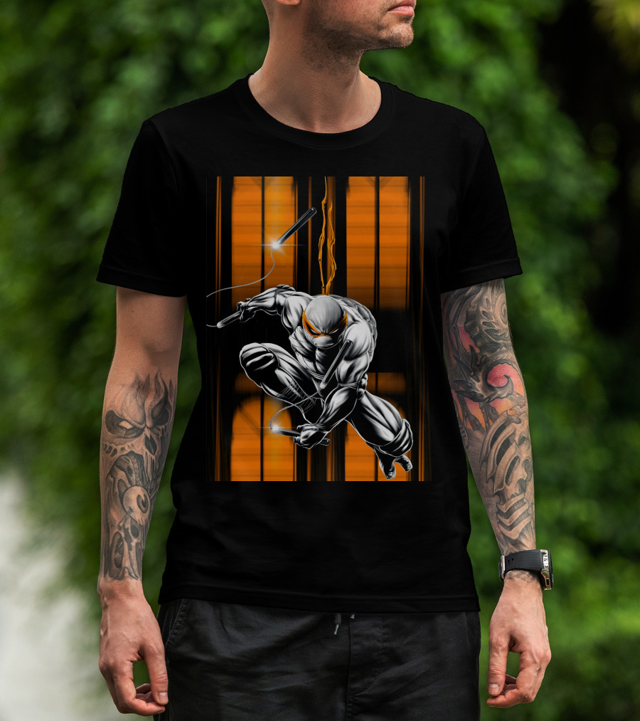 Michelangelo Ninja Turtle Nunchaku Action Orange Stripes T-Shirt