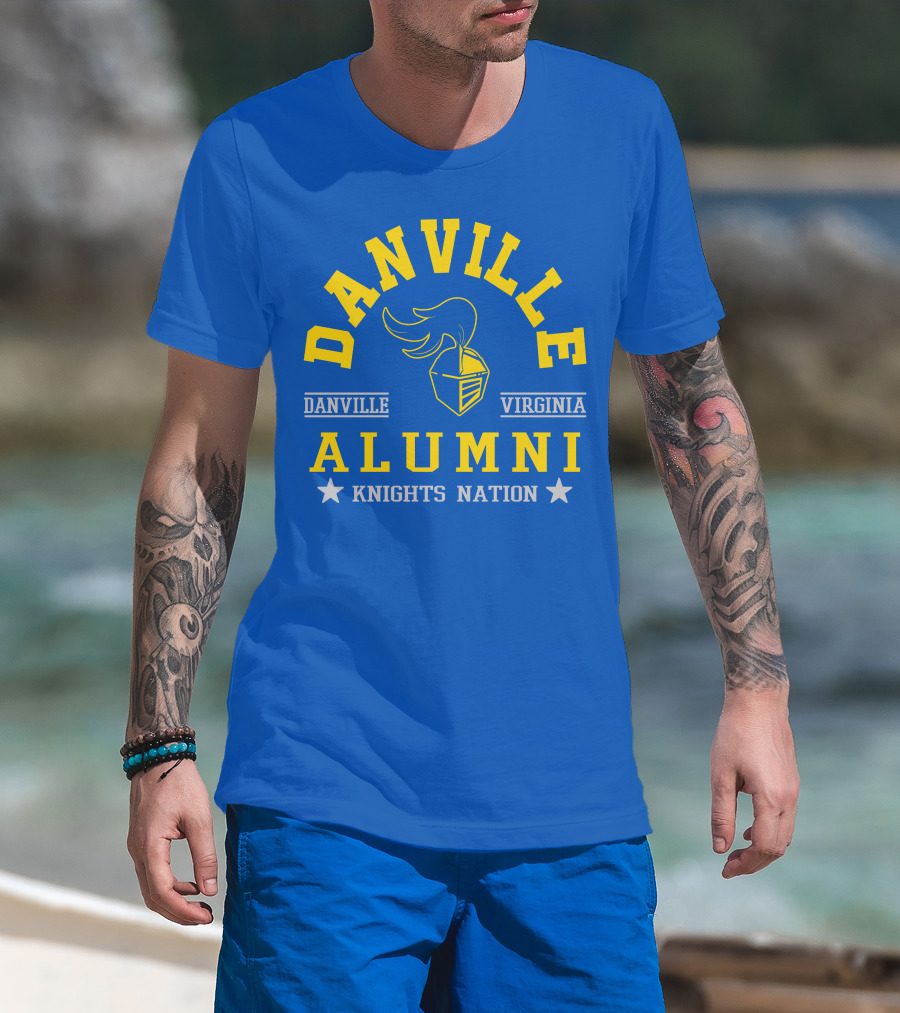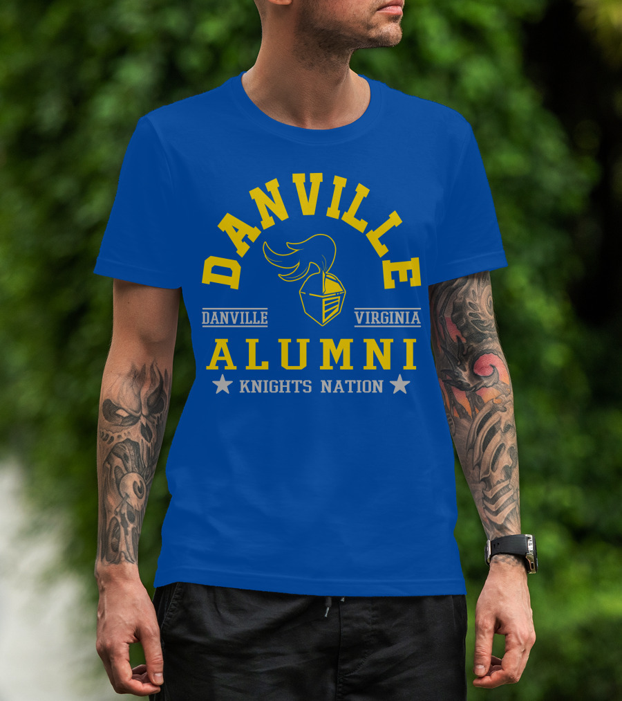 The Danville Virginia Alumni Knights Nation T-shirt is designed for everyday wear and a consistent fit. Fabric is pre-shrunk ring-spun cotton with durable stitching. See the size chart below for exact measurements.