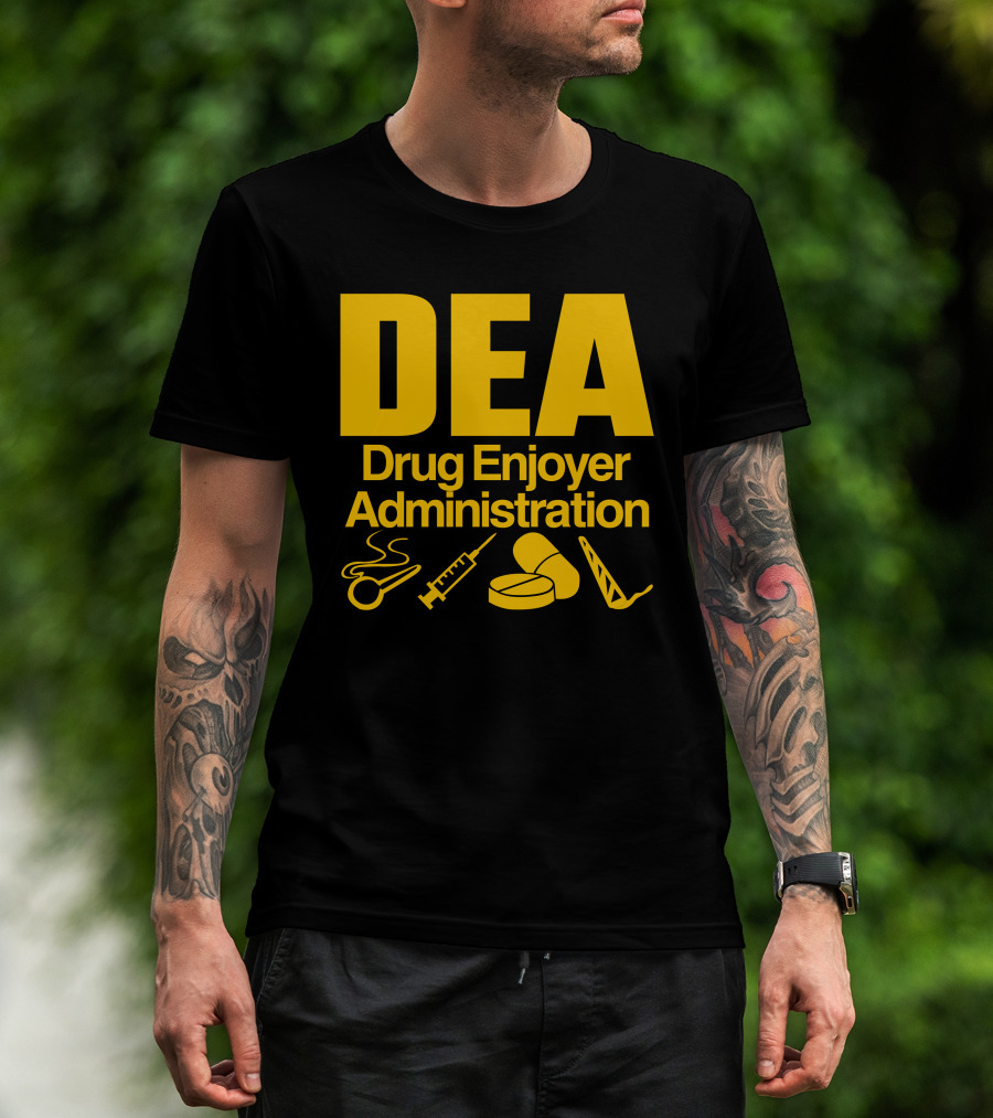 DEA Drug Enjoyer Administration Spoons Syringe Pills Razor Blade T-Shirt