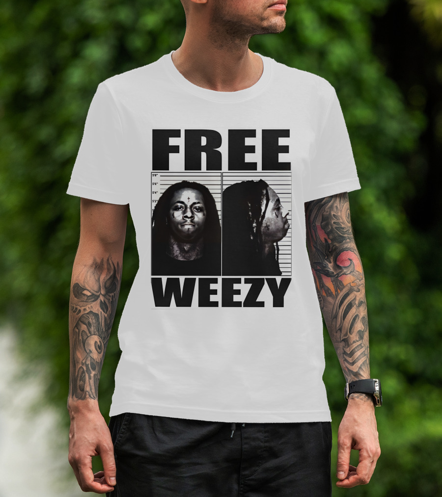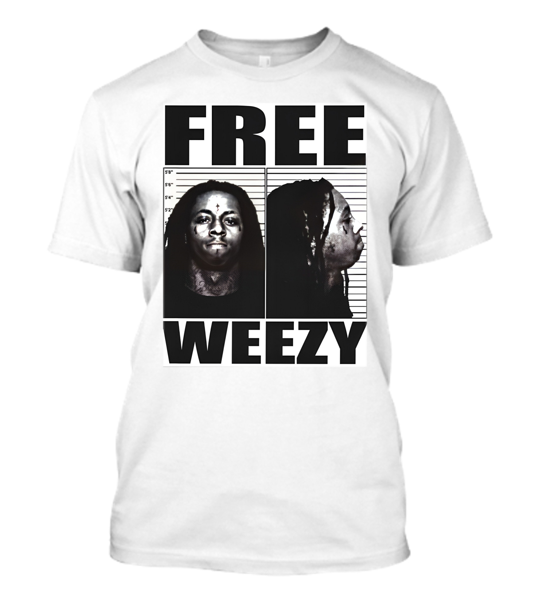 The FREE WEEZY Lil Wayne Mugshot T-shirt is designed for everyday wear and a consistent fit. Fabric is pre-shrunk ring-spun cotton with durable stitching. See the size chart below for exact measurements.