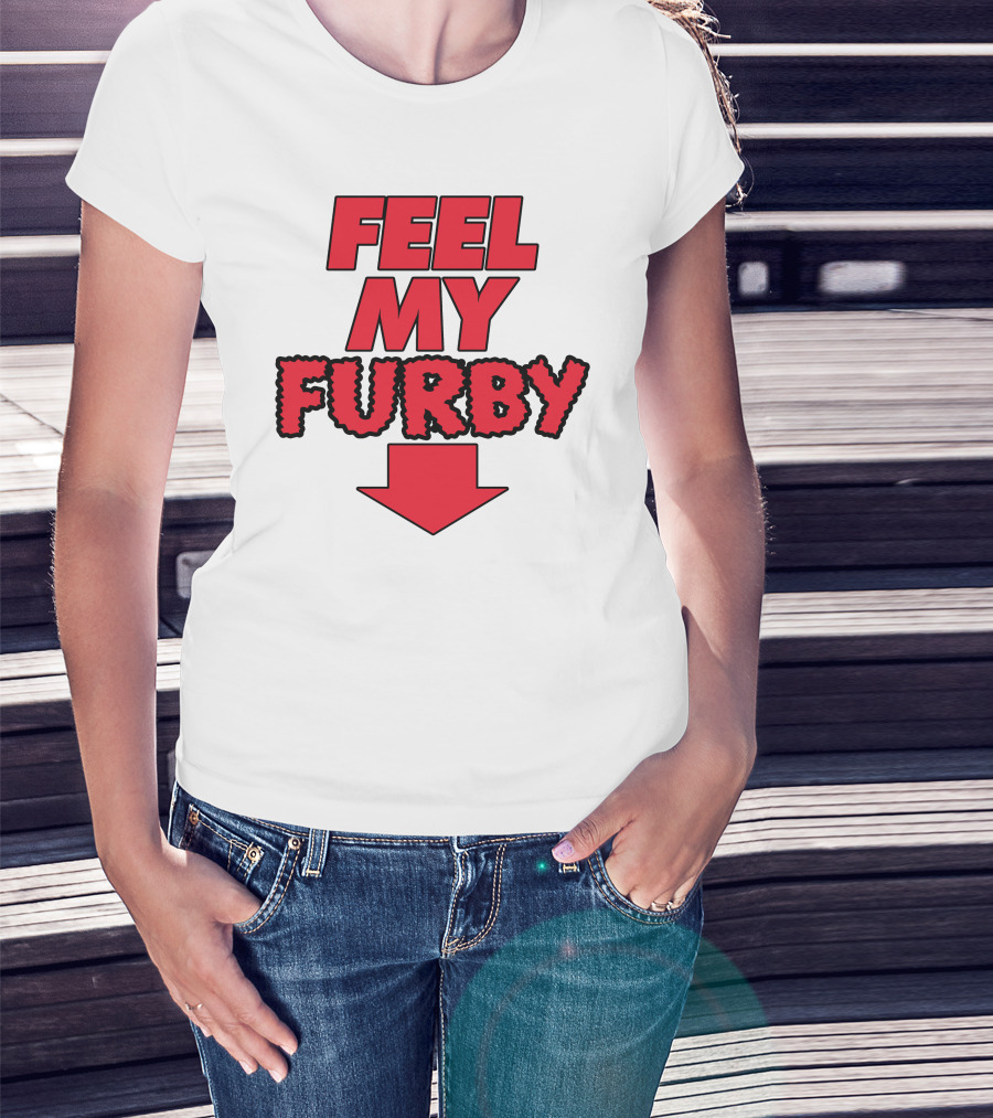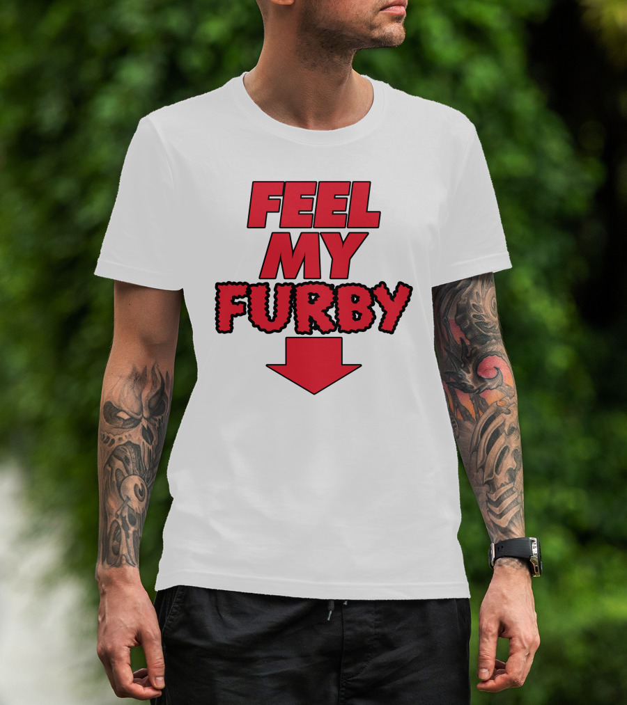 Feel My Furby Red Text With Downward Arrow T-Shirt