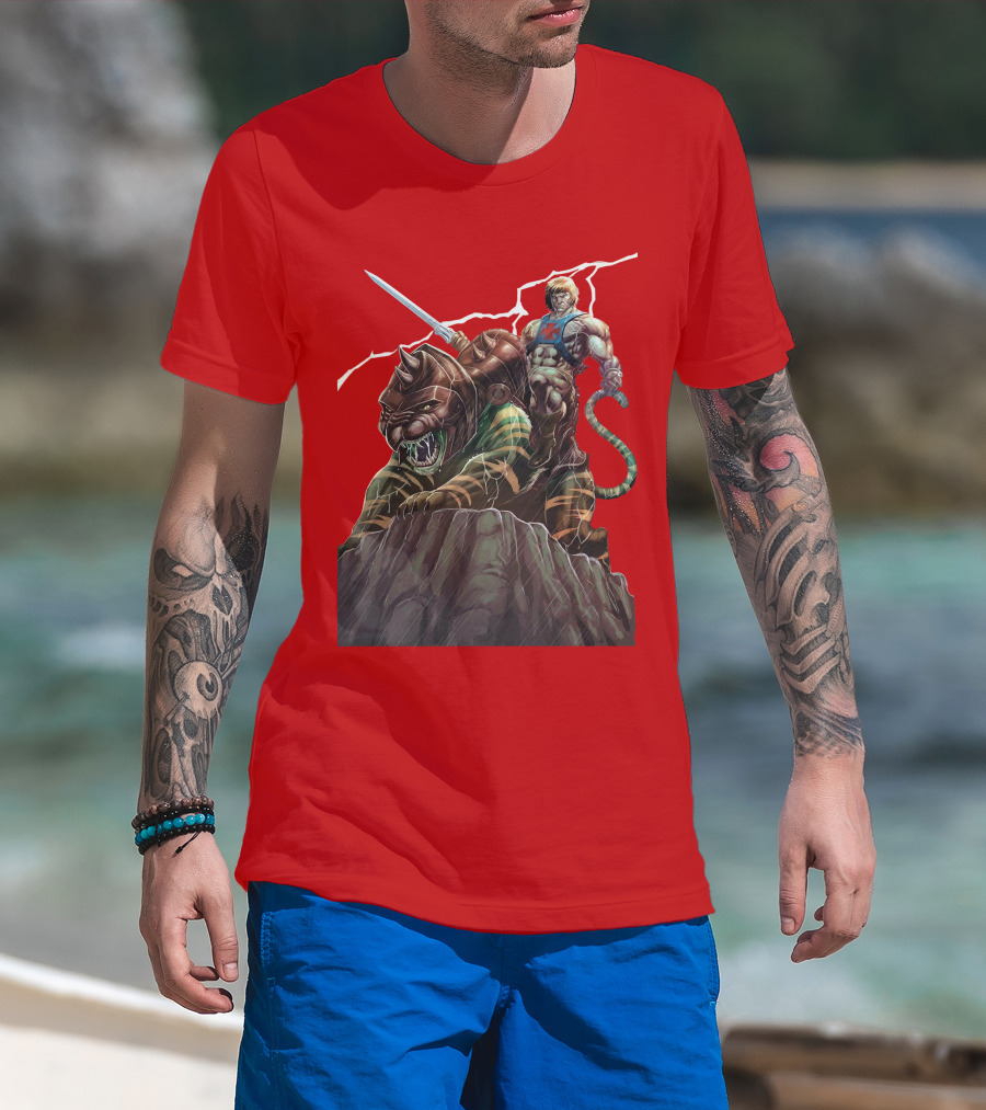 He-Man Masters Of The Universe Sword And Battle Cat On Rock With Lightning T-Shirt