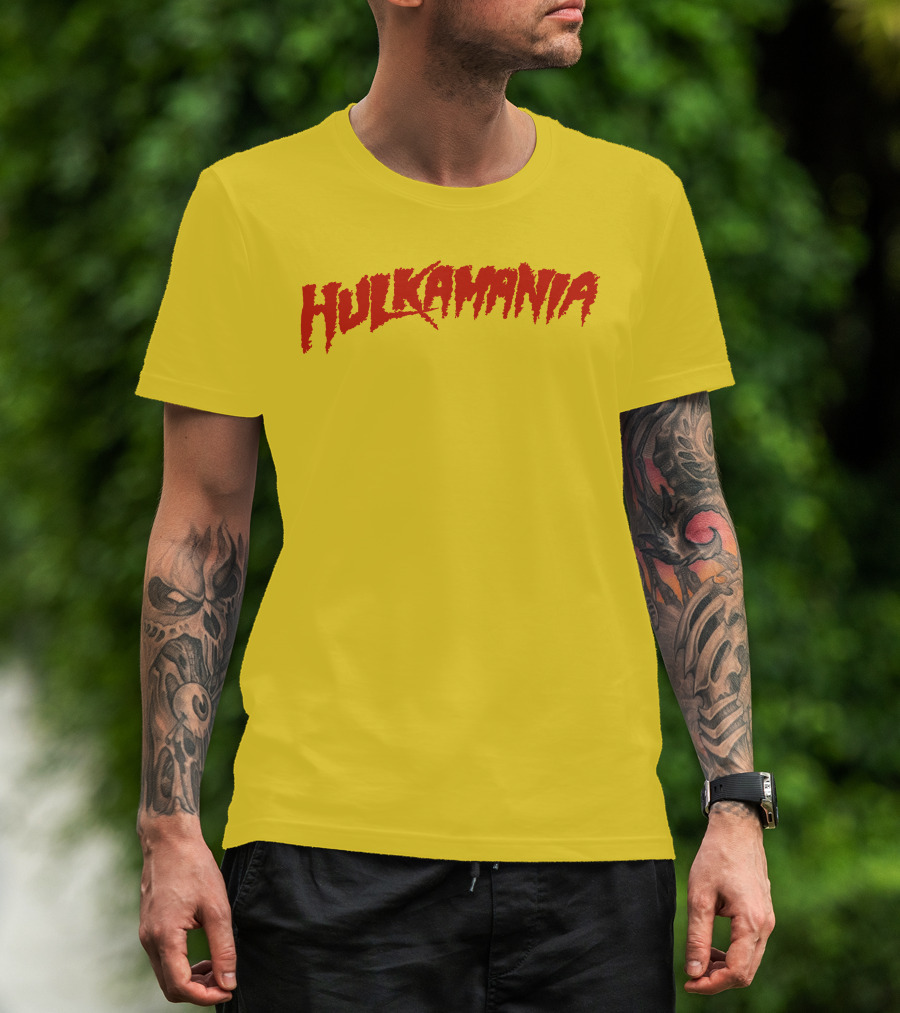 The Jake Paul Wearing Iconic Hulkamania Yellow and Red T-shirt is designed for everyday wear and a consistent fit. Fabric is pre-shrunk ring-spun cotton with durable stitching. See the size chart below for exact measurements.