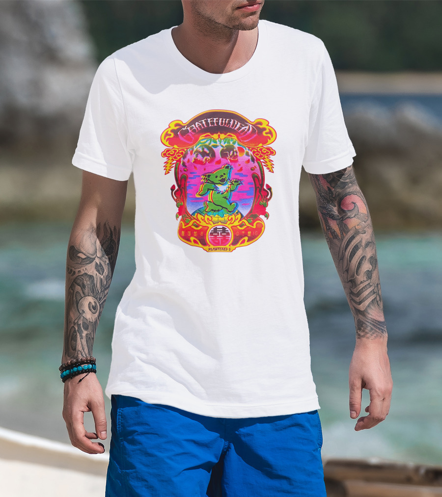 Grateful Dead X Plastered Psychedelic Bear Design With Skulls And Lightning T-Shirt