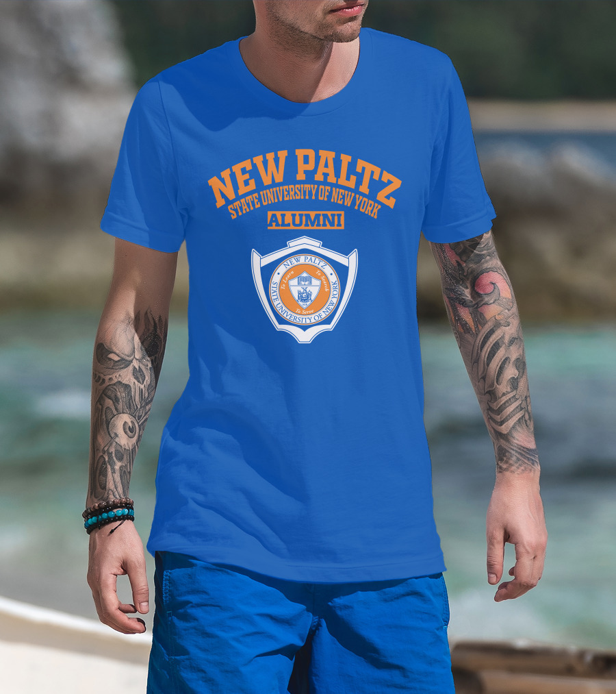 The NEW PALTZ STATE UNIVERSITY OF NEW YORK ALUMNI SEAL TO LEARN TO SEARCH TO SERVE T-shirt is designed for everyday wear and a consistent fit. Fabric is pre-shrunk ring-spun cotton with durable stitching. See the size chart below for exact measurements.