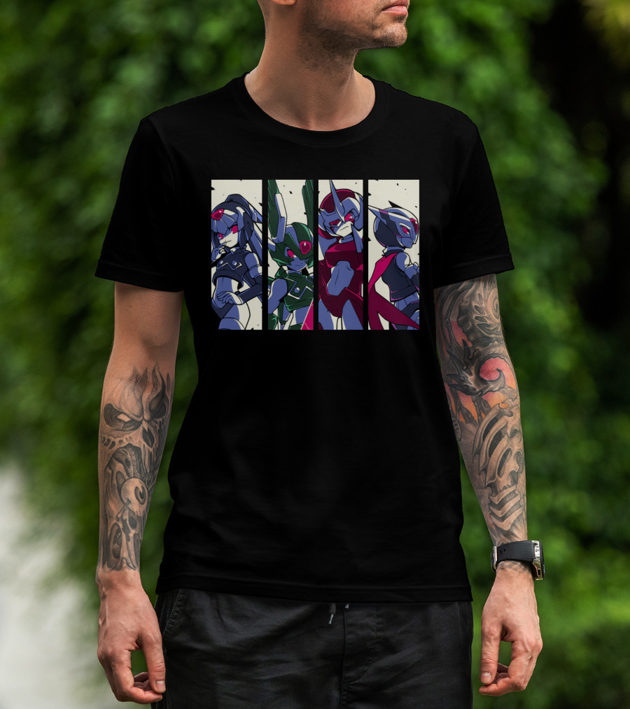 The Mega Man Zero Four Guardians Characters T-shirt is designed for everyday wear and a consistent fit. Fabric is pre-shrunk ring-spun cotton with durable stitching. See the size chart below for exact measurements.