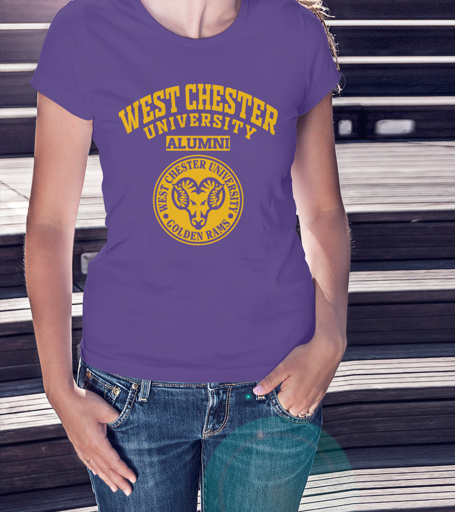 The West Chester University Alumni Golden Rams T-shirt is designed for everyday wear and a consistent fit. Fabric is pre-shrunk ring-spun cotton with durable stitching. See the size chart below for exact measurements.