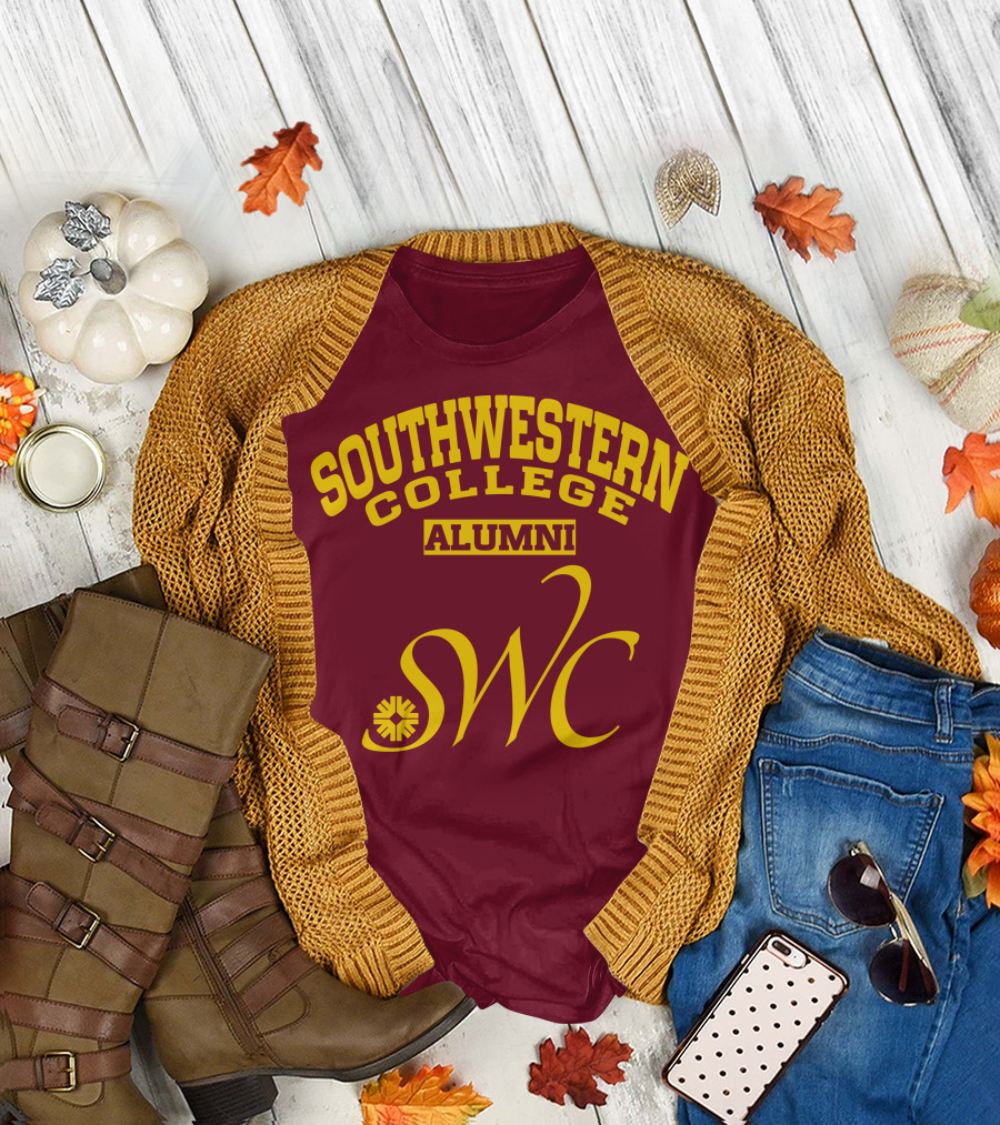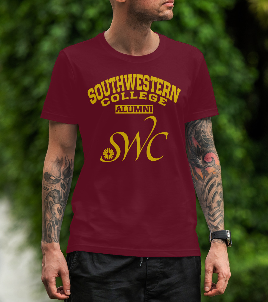 The Southwestern College Alumni SWC T-shirt is designed for everyday wear and a consistent fit. Fabric is pre-shrunk ring-spun cotton with durable stitching. See the size chart below for exact measurements.