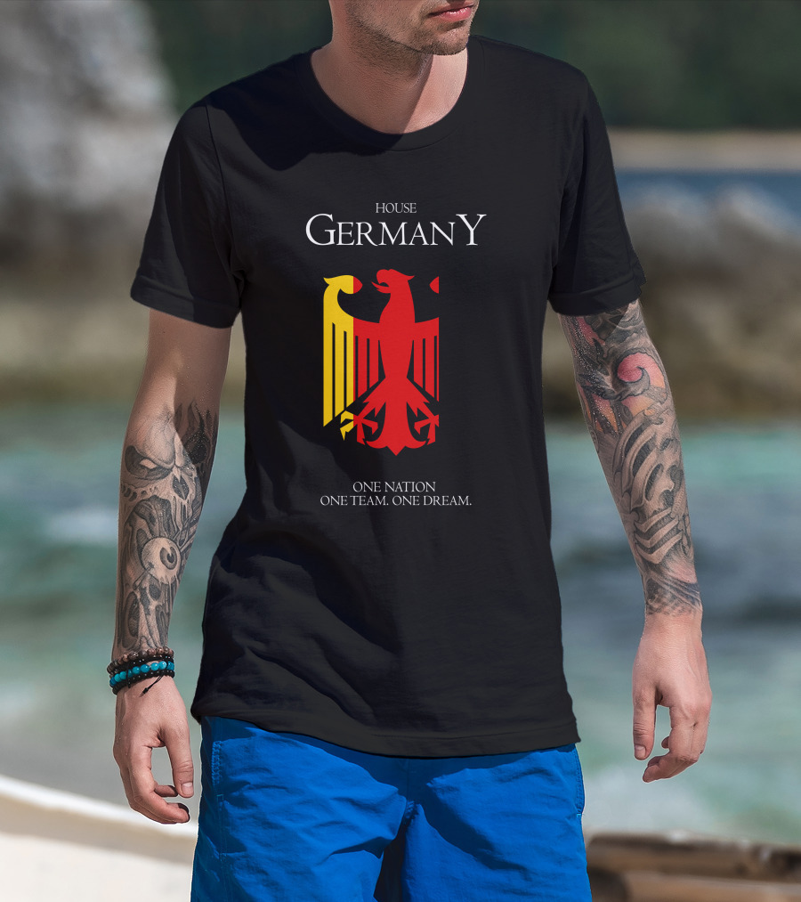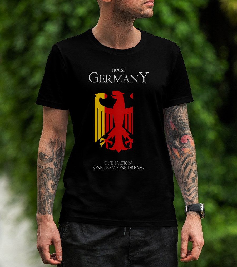 The House Germany Eagle Emblem T-shirt is designed for everyday wear and a consistent fit. Fabric is pre-shrunk ring-spun cotton with durable stitching. See the size chart below for exact measurements.