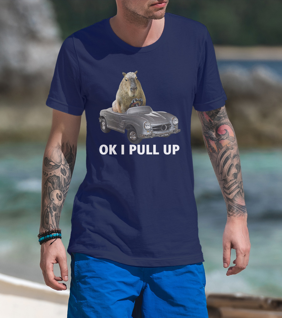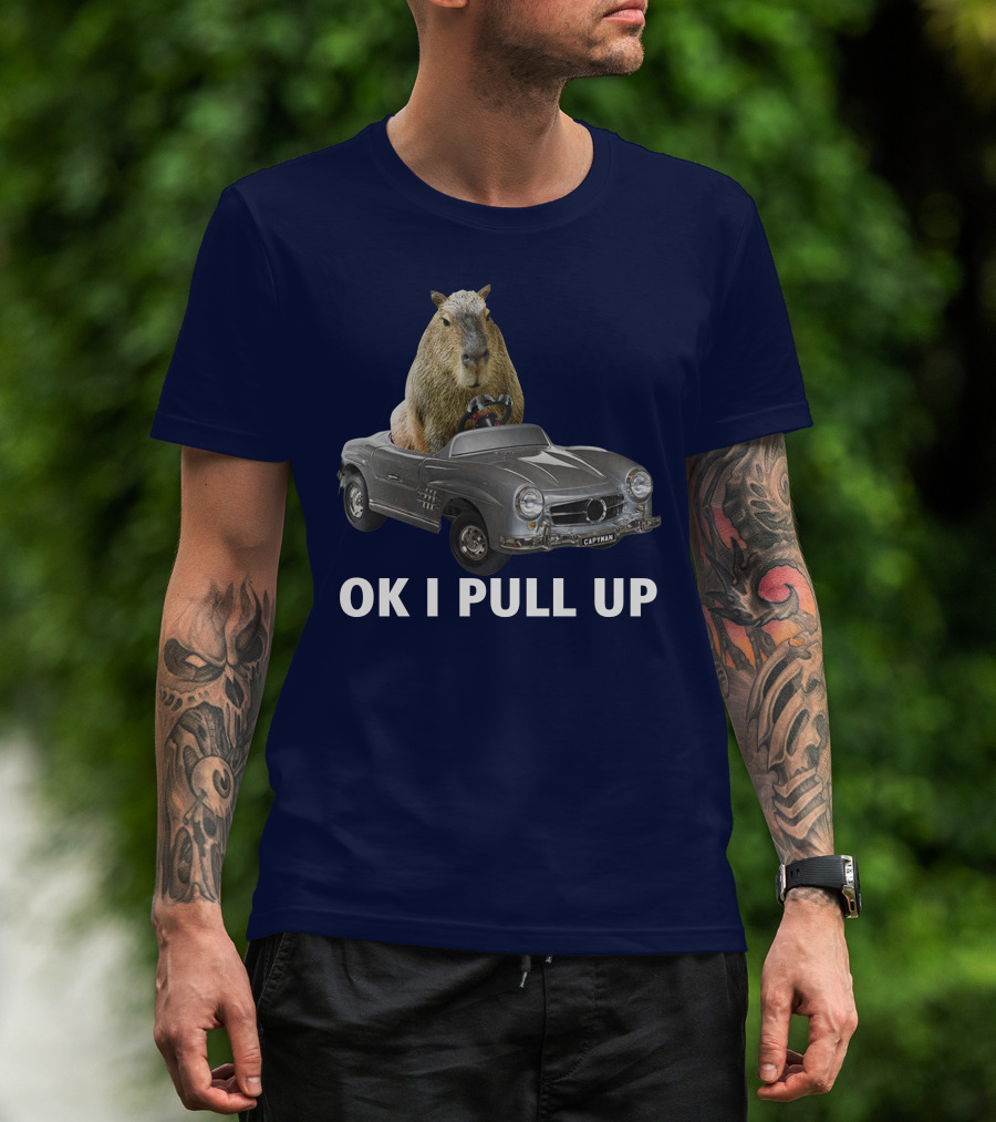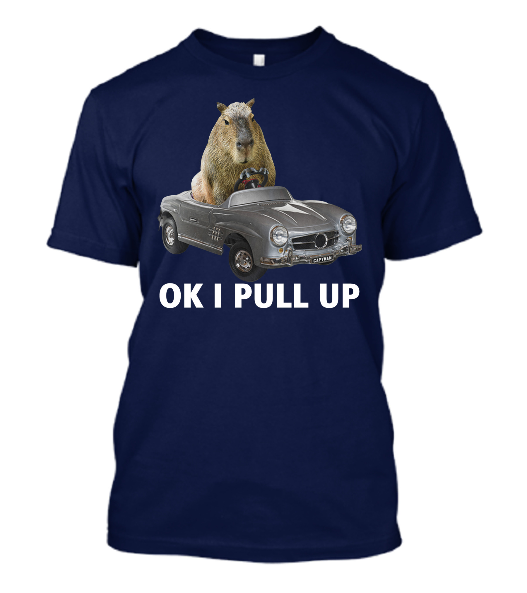 The OK I Pull Up Capy Car Capyman T-shirt is designed for everyday wear and a consistent fit. Fabric is pre-shrunk ring-spun cotton with durable stitching. See the size chart below for exact measurements.