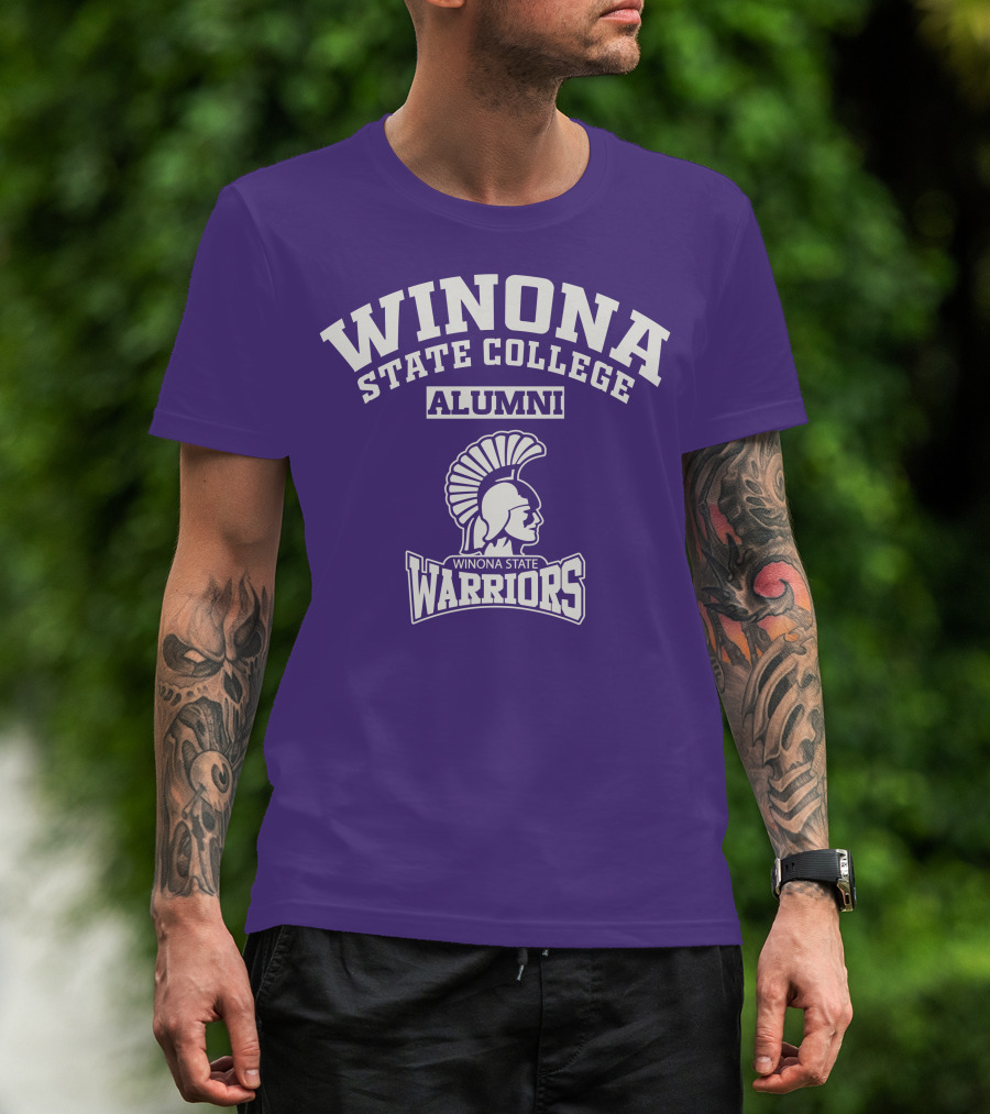 The Winona State College Alumni Warriors T-shirt is designed for everyday wear and a consistent fit. Fabric is pre-shrunk ring-spun cotton with durable stitching. See the size chart below for exact measurements.