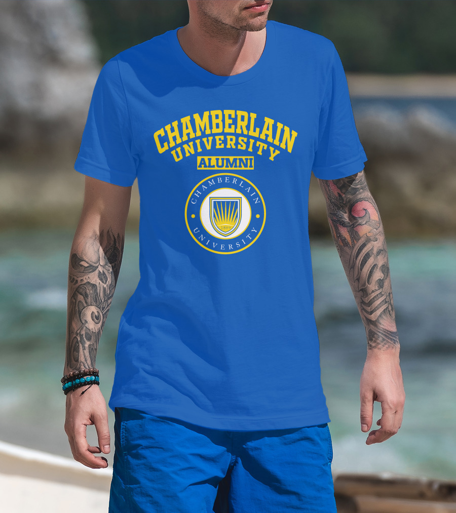 Chamberlain University Alumni 1889 Emblem Blue And Yellow Crest T-Shirt