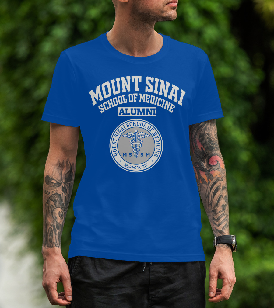 The Mount Sinai School of Medicine Alumni New York City Emblem with Caduceus and MSSM Seal T-shirt is designed for everyday wear and a consistent fit. Fabric is pre-shrunk ring-spun cotton with durable stitching. See the size chart below for exact measurements.
