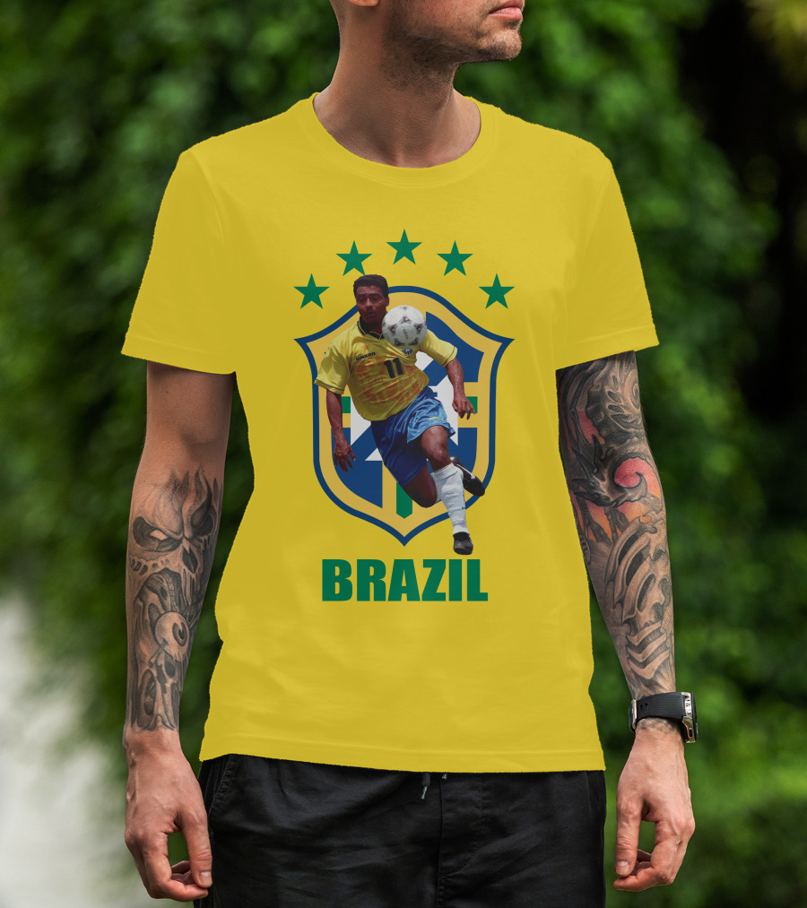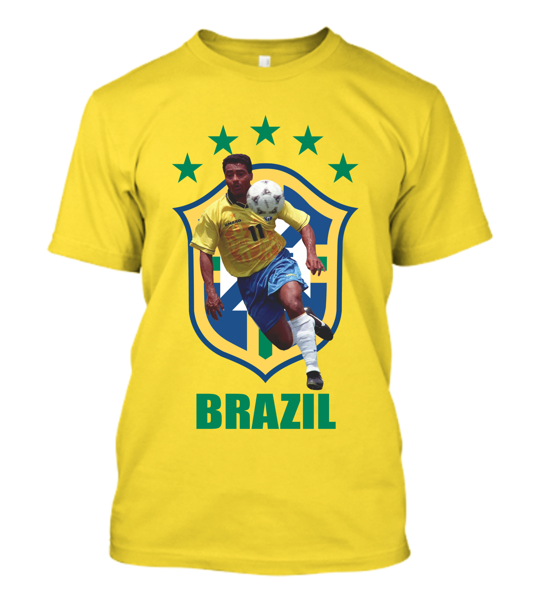 The Romario Brazil Soccer Legend Iconic Moment T-shirt is designed for everyday wear and a consistent fit. Fabric is pre-shrunk ring-spun cotton with durable stitching. See the size chart below for exact measurements.