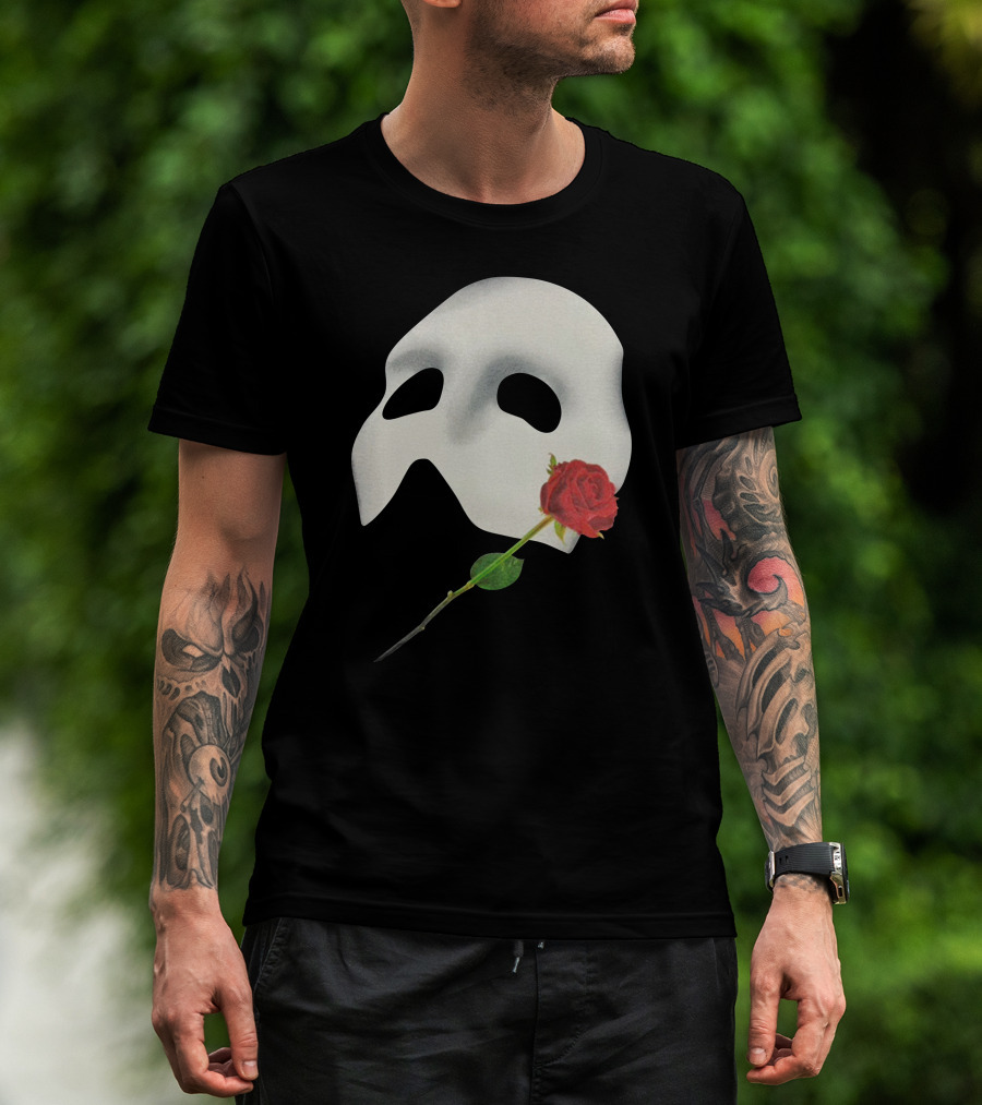 The Phantom Of The Opera 1988 Mask And Red Rose Iconography T-Shirt
