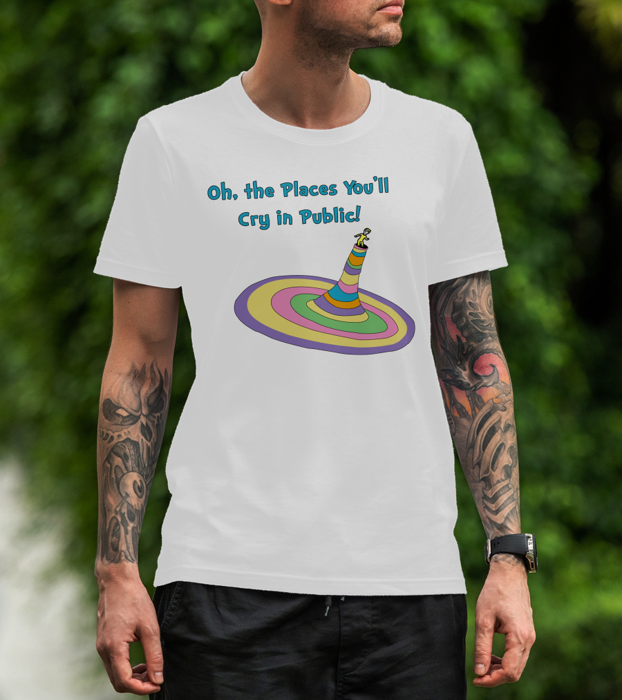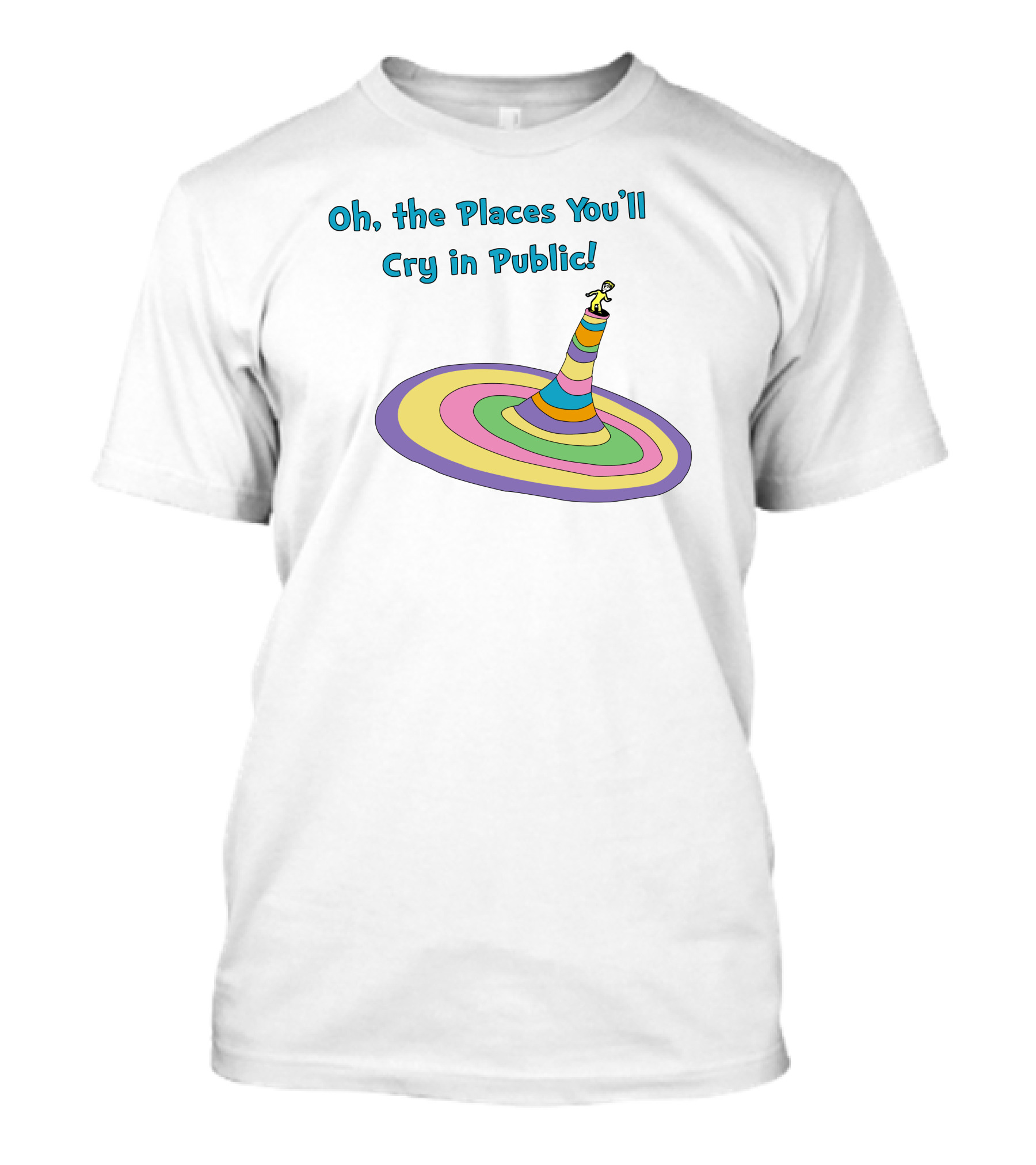 The Oh The Places You'll Cry In Public Colorful Spiral Tower Scene T-shirt is designed for everyday wear and a consistent fit. Fabric is pre-shrunk ring-spun cotton with durable stitching. See the size chart below for exact measurements.