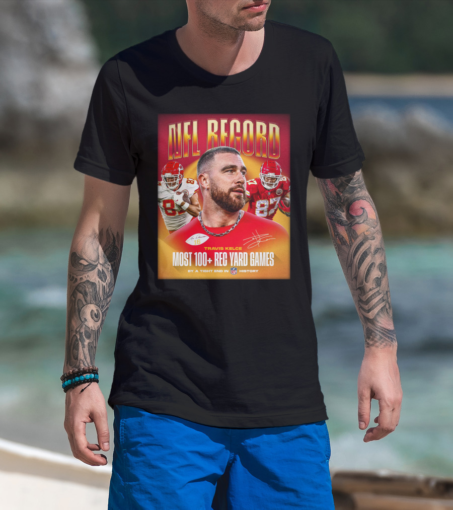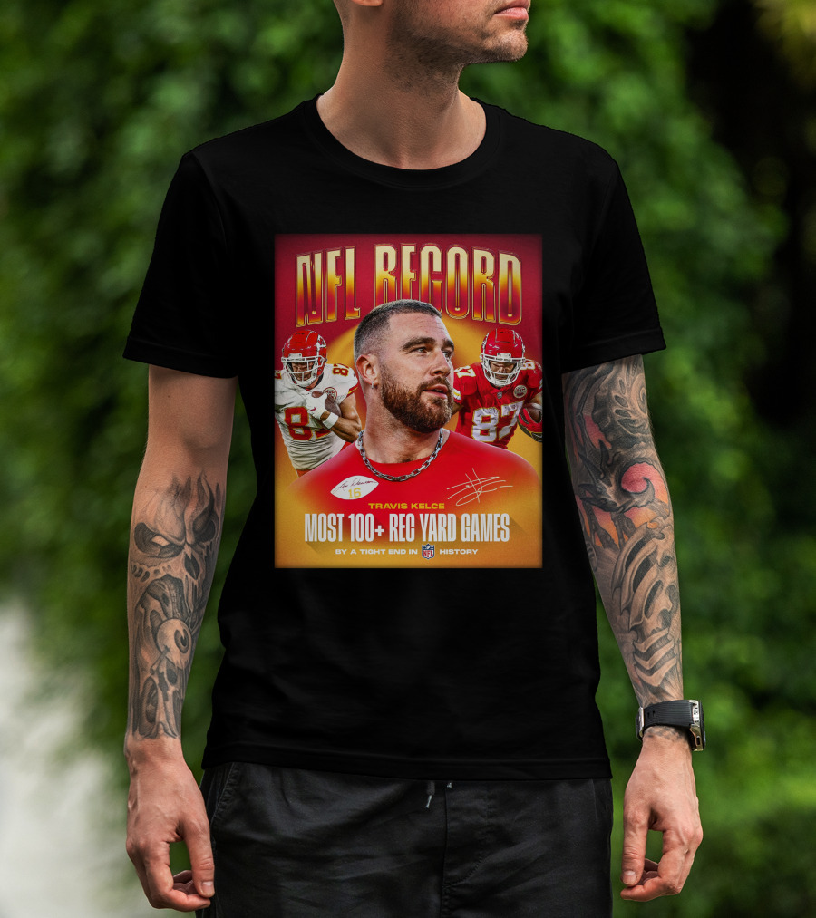 NFL Record Travis Kelce Most 100+ Rec Yard Games Chiefs 87 16 History T-Shirt