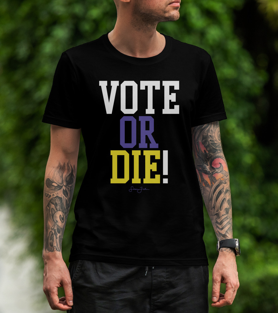 The Vote Or Die Sean John T-shirt is designed for everyday wear and a consistent fit. Fabric is pre-shrunk ring-spun cotton with durable stitching. See the size chart below for exact measurements.