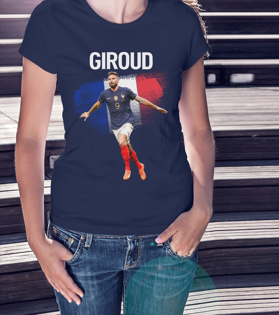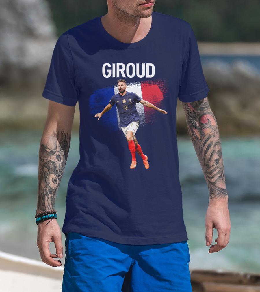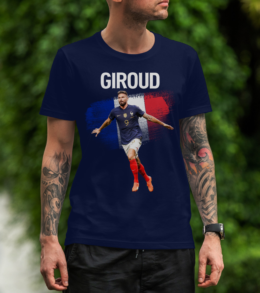 The Giroud 9 France Football T-shirt is designed for everyday wear and a consistent fit. Fabric is pre-shrunk ring-spun cotton with durable stitching. See the size chart below for exact measurements.