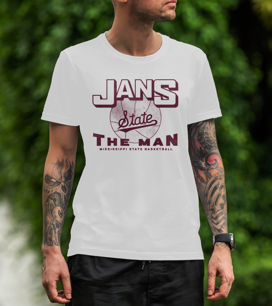 The Jans State The Man Mississippi State Basketball T-shirt is designed for everyday wear and a consistent fit. Fabric is pre-shrunk ring-spun cotton with durable stitching. See the size chart below for exact measurements.