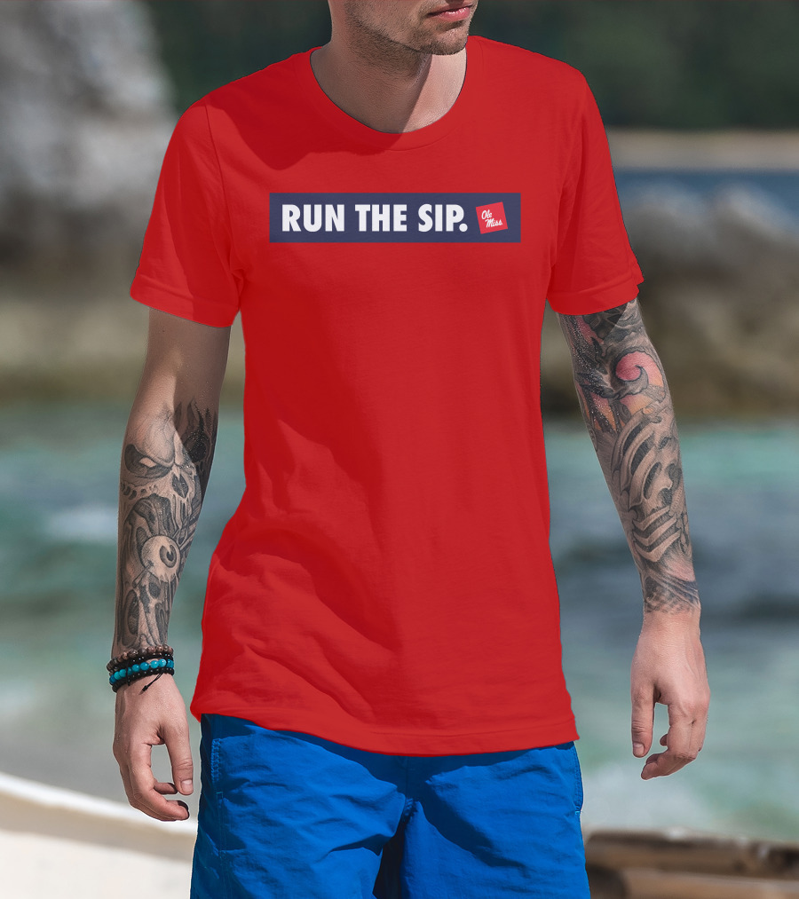 The Ole Miss Run The Sip Bold Red T-shirt is designed for everyday wear and a consistent fit. Fabric is pre-shrunk ring-spun cotton with durable stitching. See the size chart below for exact measurements.