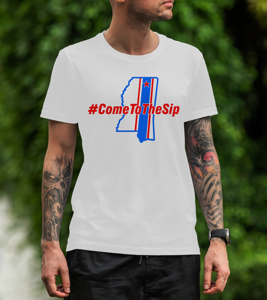 ComeToTheSip Mississippi Map Blue Red Star T-Shirt