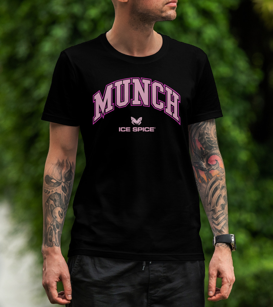 The Munch Ice Spice Butterfly T-shirt is designed for everyday wear and a consistent fit. Fabric is pre-shrunk ring-spun cotton with durable stitching. See the size chart below for exact measurements.