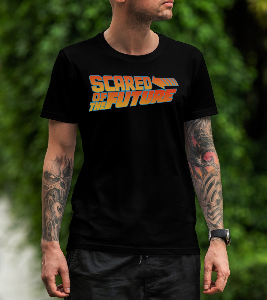 The Scared Of The Future Back To The Future T-shirt is designed for everyday wear and a consistent fit. Fabric is pre-shrunk ring-spun cotton with durable stitching. See the size chart below for exact measurements.
