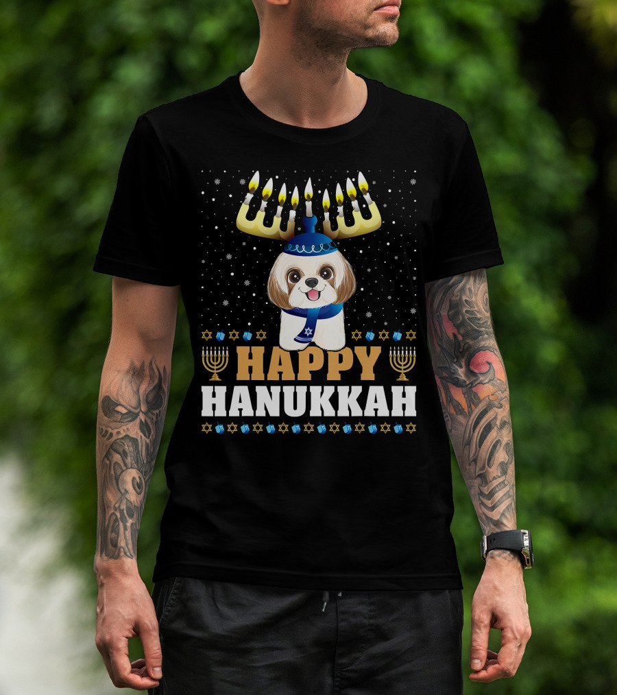 Cute Menorah Chanukah Funny Shih Tzu Happy Hanukkah T-Shirt